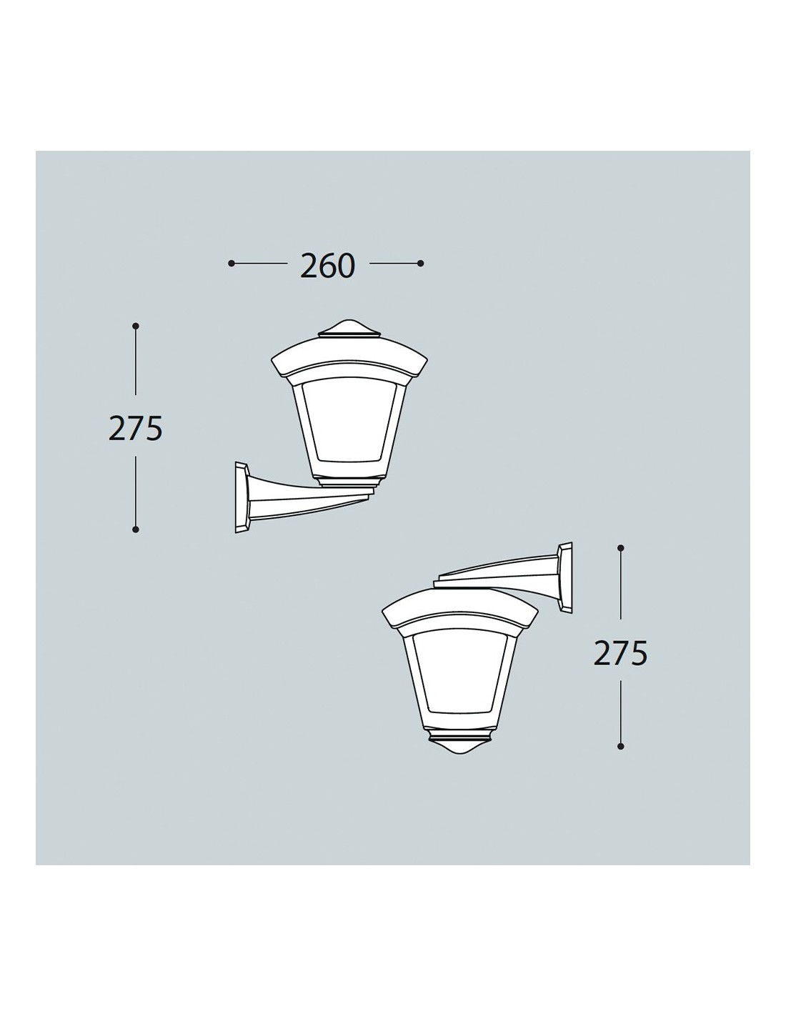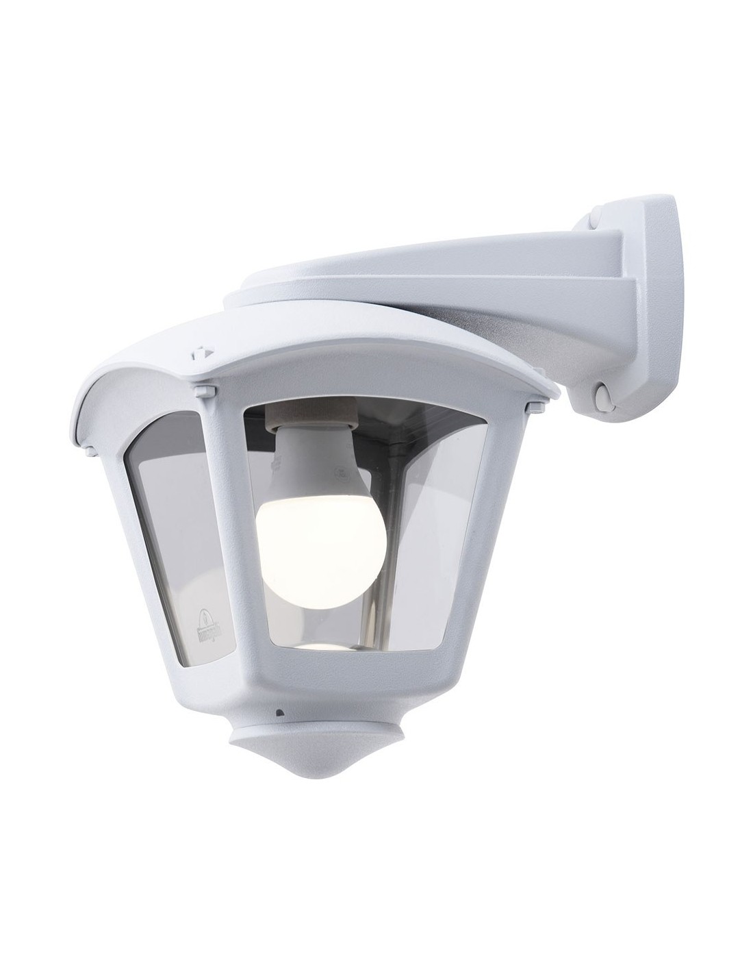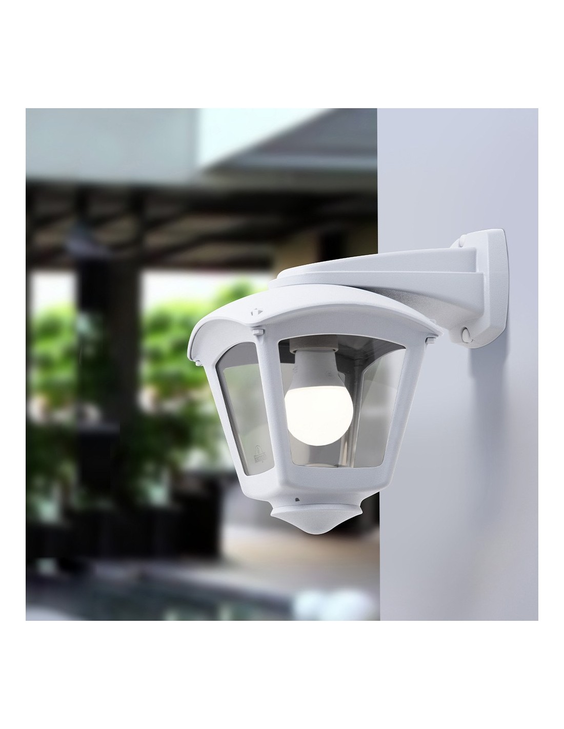 Farol de pared con brazo, modelo nardo/roby, color blanco con cristal transparente, tensión 220 - 240 v ~50/60 hz, casquillo e27, máximo 23 w, longitud máxima bombilla 130 mm, bombilla no incluida, grado de protección ip55, hecho de resina resistente uv, anticorrosión y antióxido. incluye elementos de fijación. 195 x 260 x 275 mm