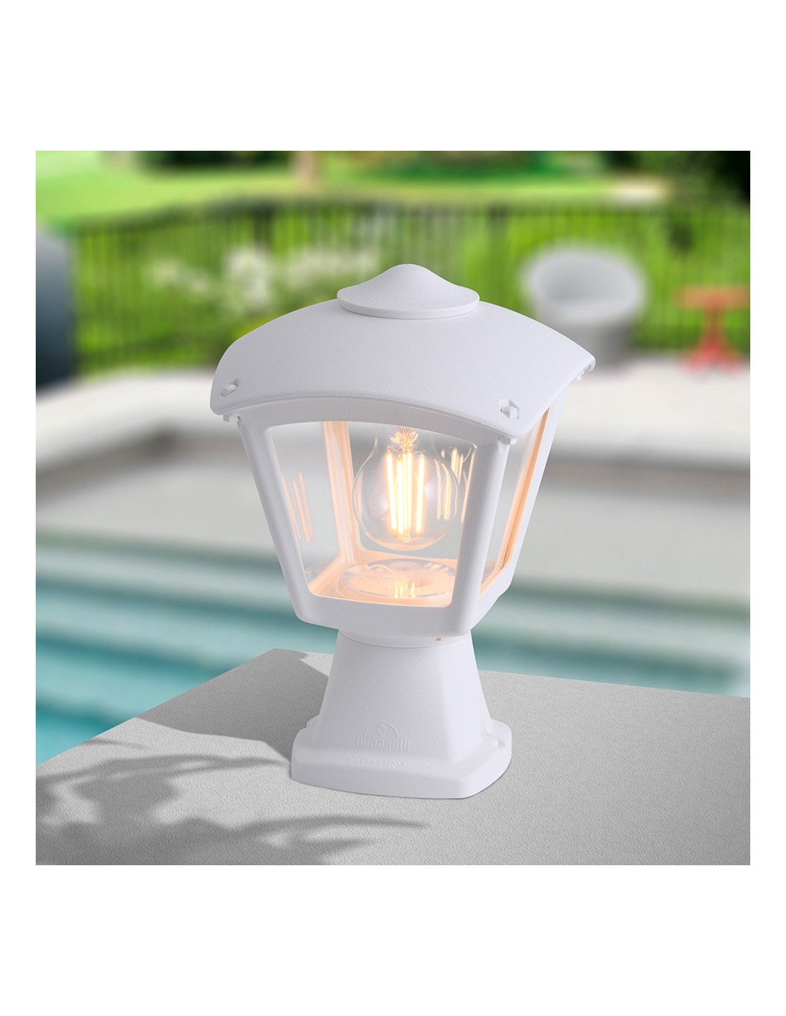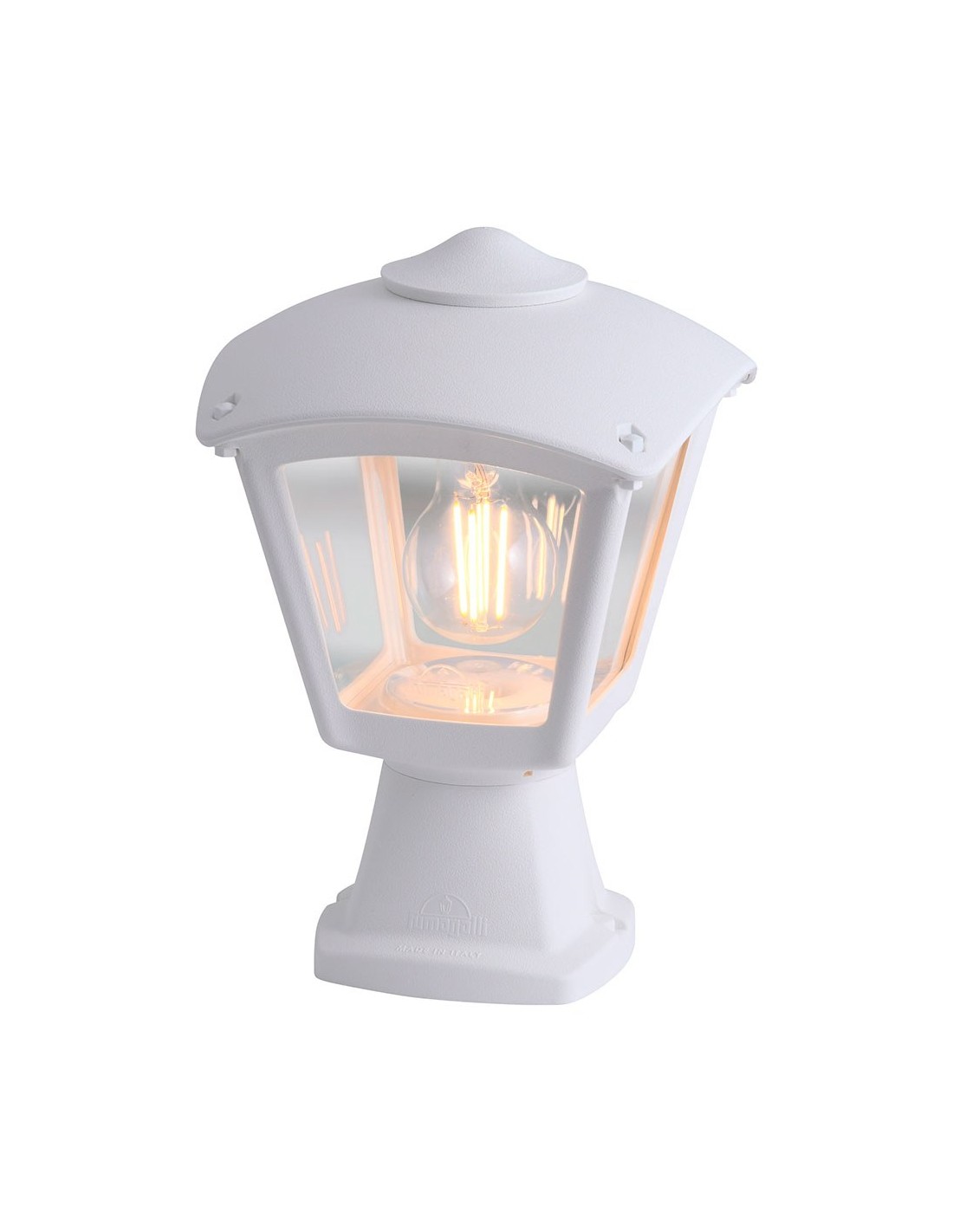 Farol sobremuro, modelo disma/roby, color blanco con cristal transparente, tensión 220 - 240 v ~50/60 hz, casquillo e27, máximo 23 w, longitud máxima bombilla 110 mm, bombilla no incluida, grado de protección ip55, hecho de resina resistente uv, anticorrosión y antióxido. incluye elementos de fijación. 195 x 195 x 290 mm