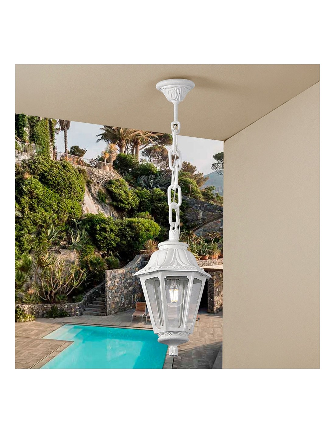 Farol de techo con cadena, modelo sichem/anna, color blanco con cristal transparente, tensión 220 - 240 v ~50/60 hz, casquillo e27, máximo 23 w, longitud máxima bombilla 130 mm, bombilla no incluida, grado de protección ip55, hecho de resina resistente uv, anticorrosión y antióxido. ø220 x 800 mm