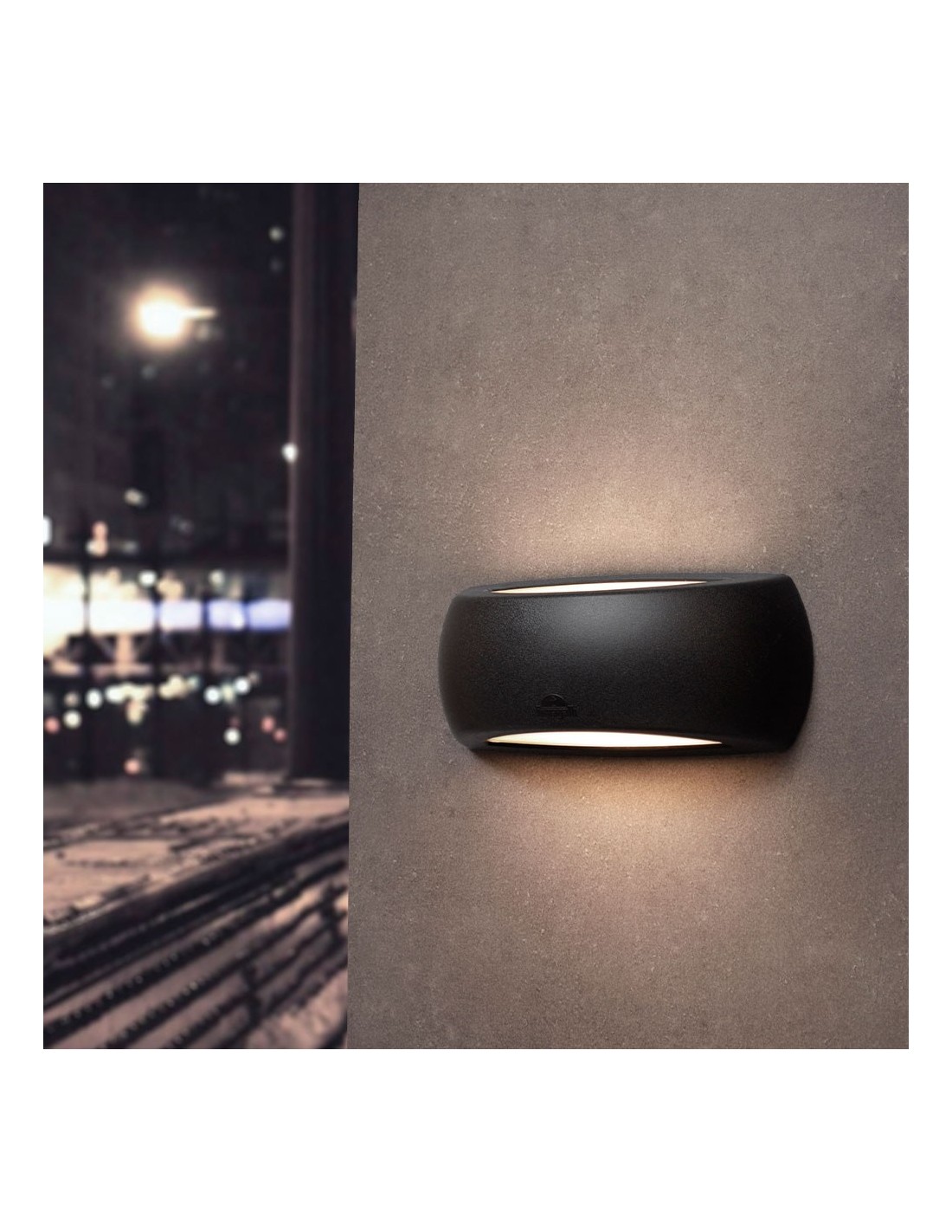 Aplique ovalado con visera, modelo francy, color negro con cristal translúcido, tensión 220 - 240 v ~50/60 hz, casquillo e27, máximo 23 w, longitud máxima bombilla 160 mm, bombilla no incluida, grado de protección ip66, hecho de resina resistente uv, anticorrosión y antióxido. incluye elementos de fijación. 300 x 85 x 130 mm