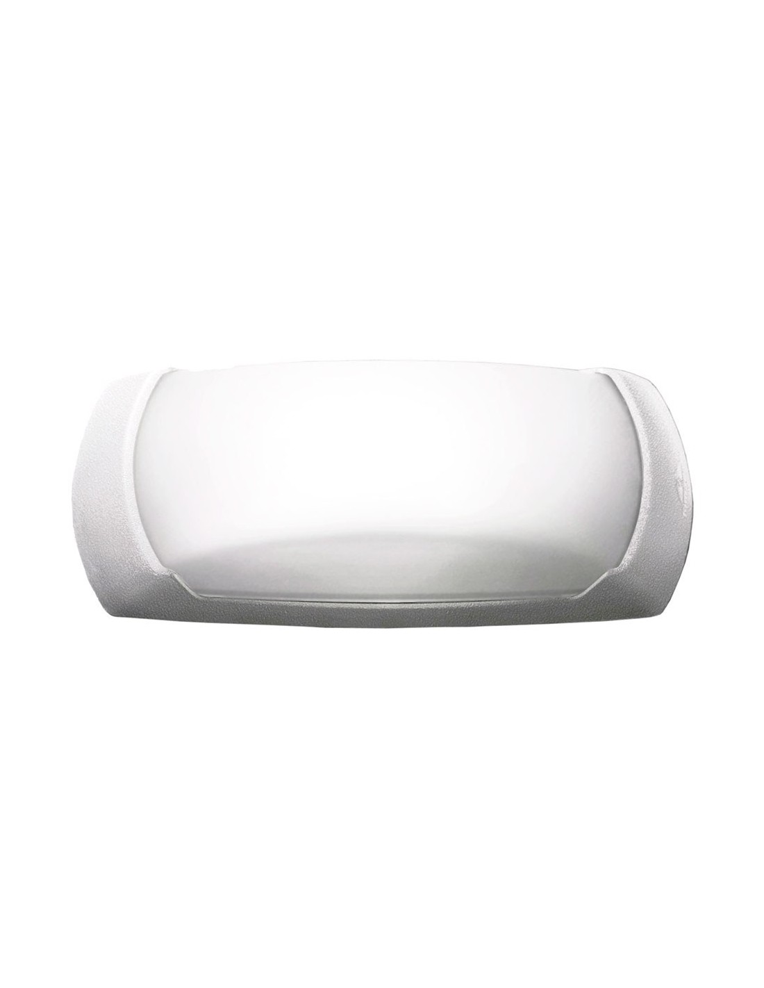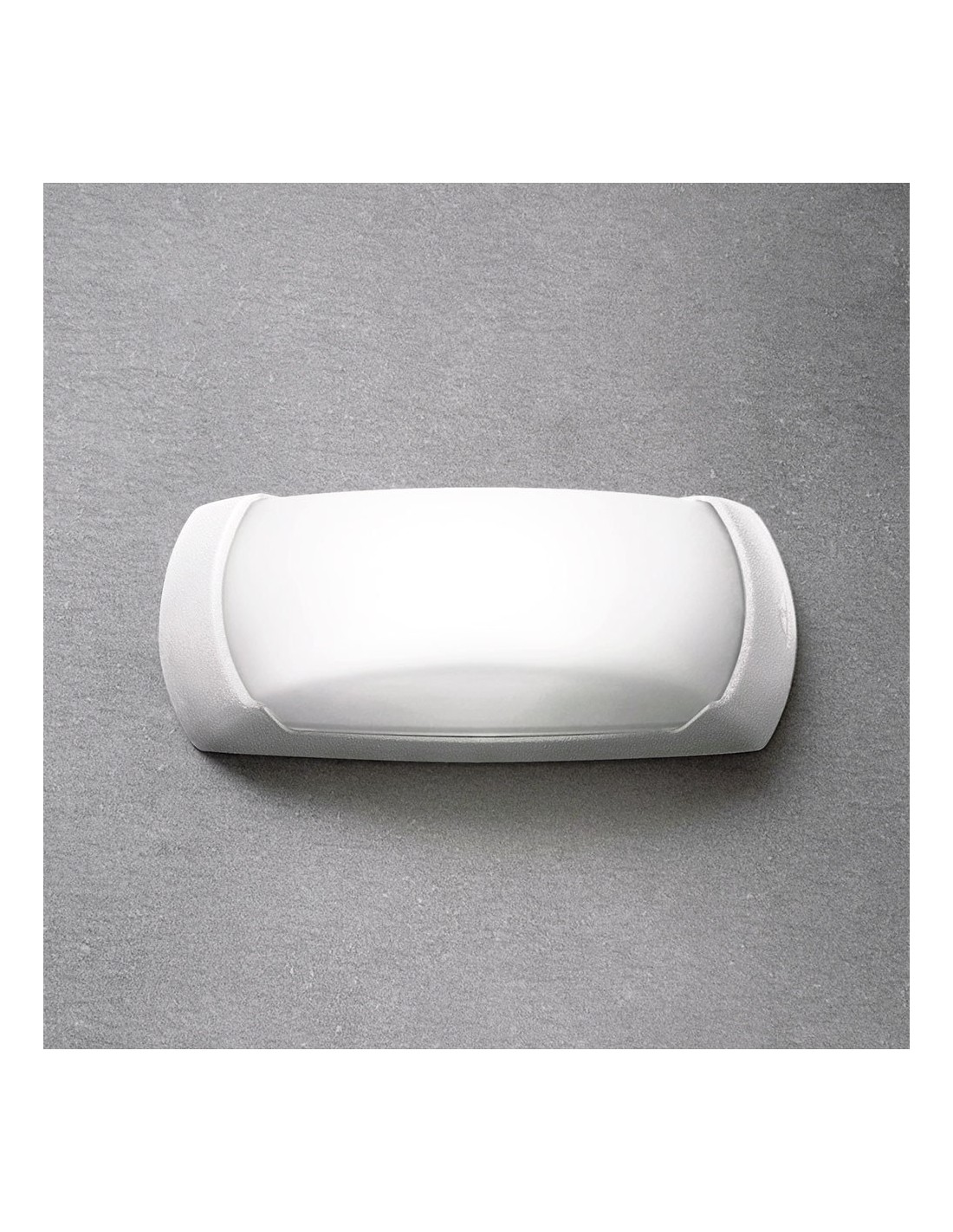 Aplique ovalado, modelo francy-op, color blanco con cristal translúcido, tensión 220 - 240 v ~50/60 hz, casquillo e27, máximo 23 w, longitud máxima bombilla 160 mm, bombilla no incluida, grado de protección ip66, hecho de resina resistente uv, anticorrosión y antióxido. incluye elementos de fijación. 300 x 85 x 130 mm