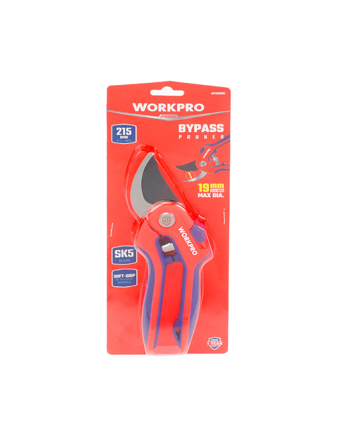 Tijeras de poda sk5 corte bypass, corte máx ø19 mm, 215 mm diseño de hoja bypass para podar crecimiento verde y vivo como arbustos y árboles ornamentales cuchillas sk5 con tratamiento térmico empuñaduras cómodas de pp y tpr mecanismo de bloqueo