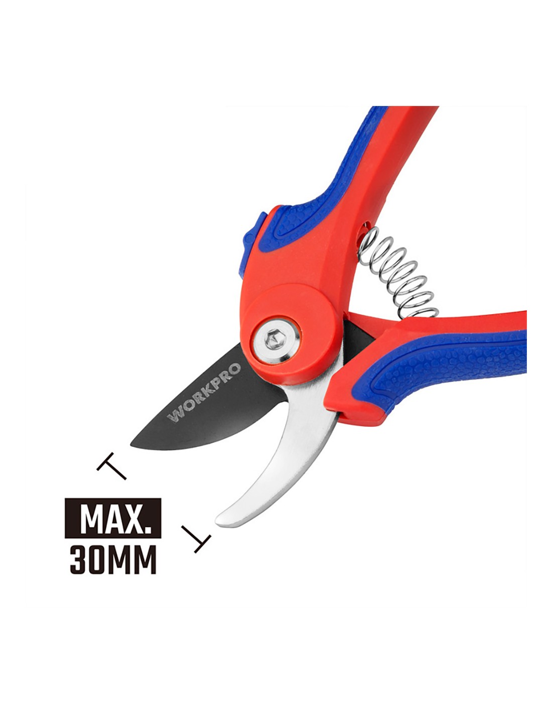 Tijeras jardineria, 180 mm para cortar plantas verdes vivas, árboles, setos, arbustos y rosales, etc... hojas con tratamiento térmico recubiertas con teflón antiadherente que resiste la savia y otros materiales pegadizos empuñaduras cómodas de nylon y tpr mecanismo de bloqueo, corte máximo ø10 mm, apertura máxima 30 mm