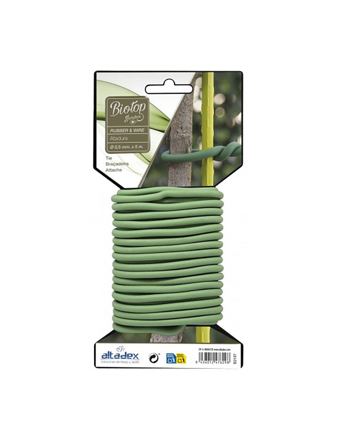 Atadura de goma con alambre, flexible con núcleo de alambre recubierto de goma, fácil de moldear y reutilizar. permite una sujeción firme sin dañar la planta color verde ø5 mm x 5 m