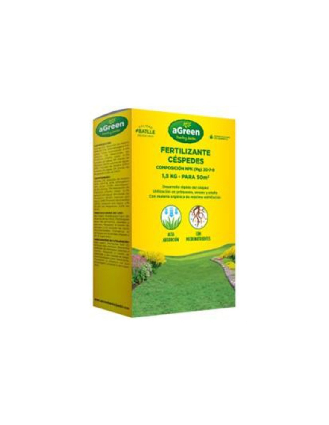 Fertilizante granulado para césped que mejora la nutrición del césped. adecuado para todo tipo de césped. autorizado para uso doméstico. contiene 1,5 kg, que permite tratar hasta 50 m². composición: npk (mg) 20-5-10 (2)