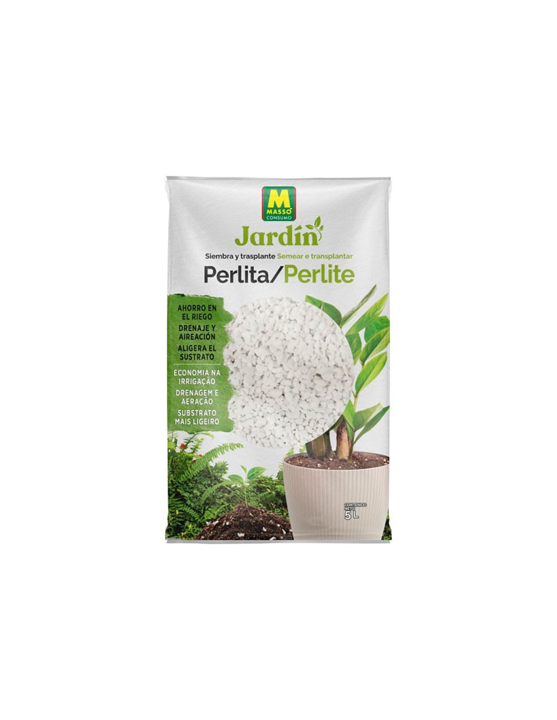 Perlita es un mineral blanco de origen volcánico, muy poroso y ligero para sustratos. ideal para siembra y trasplante. su alta porosidad retiene el agua y sirve de reserva, poniéndolo a disposición de las plantas. mezclado con el sustrato de cultivo, aligera el terreno aportando aireación. protección térmica: en superficie refleja la luz y protege las raíces de las altas temperaturas. 5 l