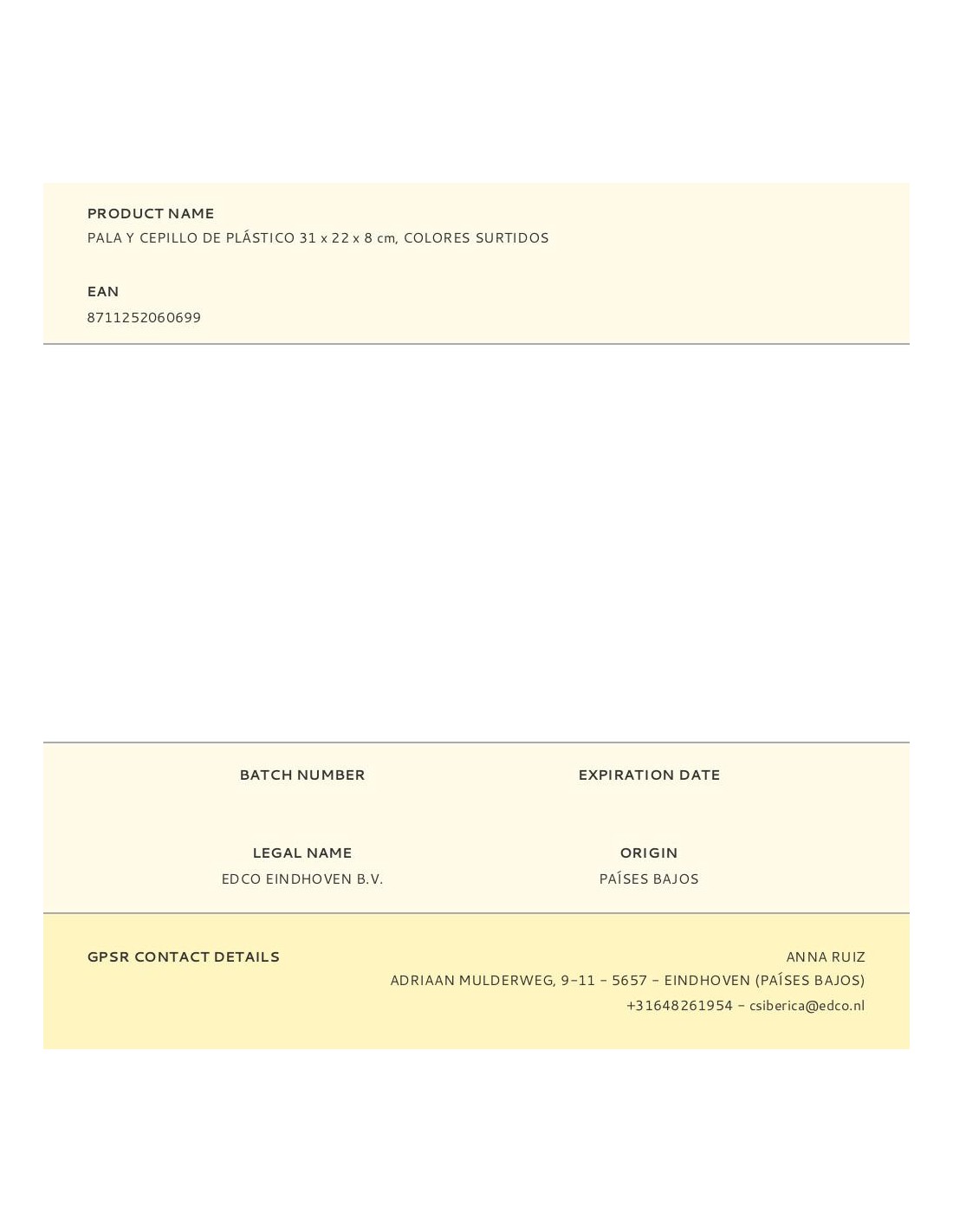 Pala y cepillo de plástico 31 x 22 x 8 cm, colores surtidos