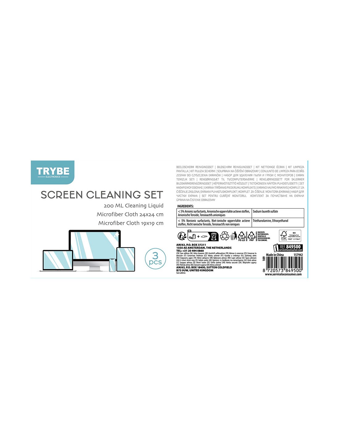 Kit limpieza pantallas, contiene spray 200 ml + bayeta microfibra 24 x 24 cm + bayeta microfibra 19 x 19 cm