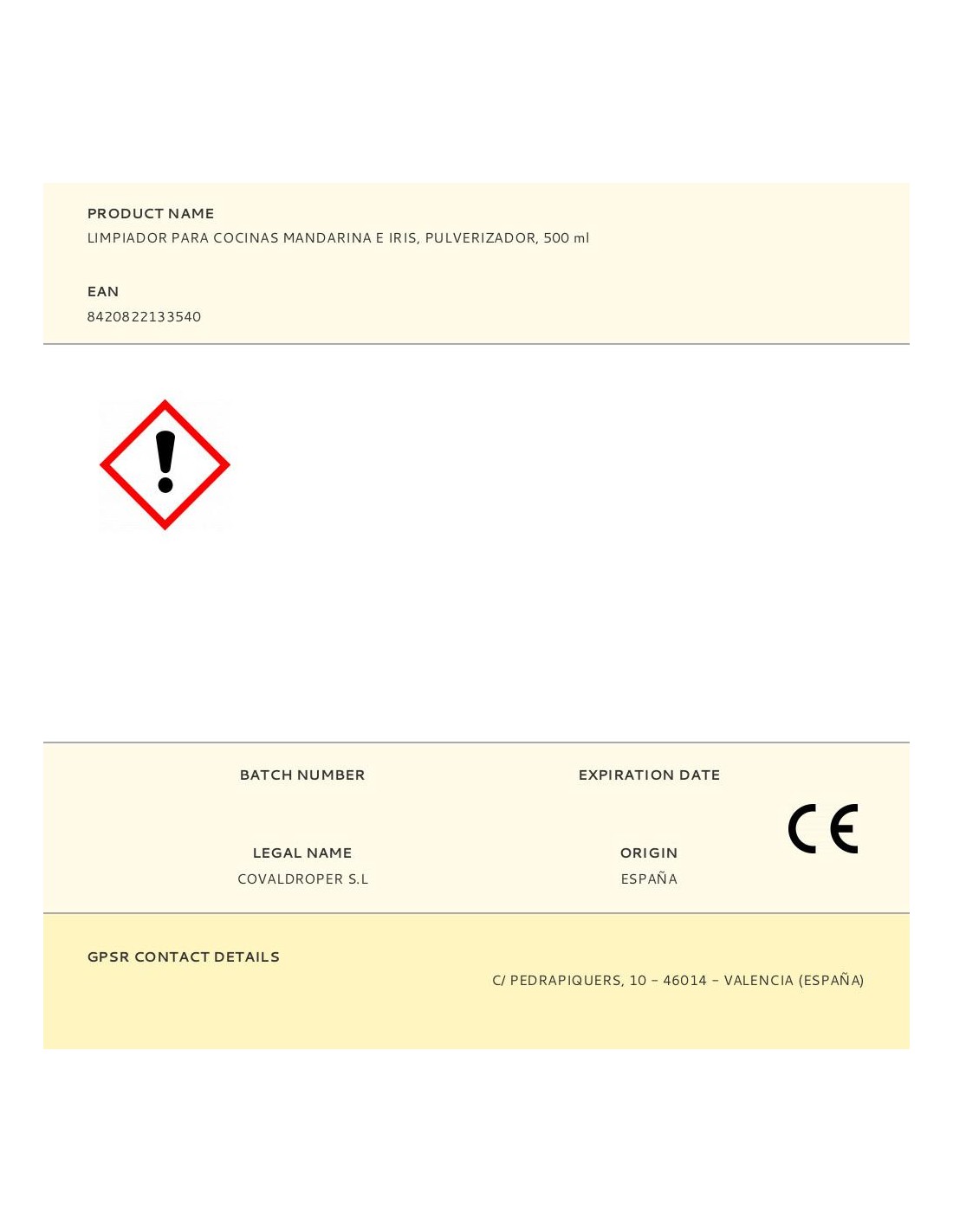 Limpiador para cocinas, mandarina e iris, pulverizador, 500 ml
