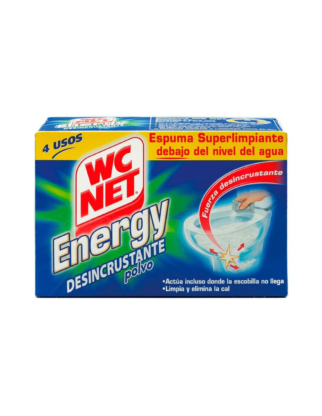 Espuma desincrustante en polvo, limpia y elimina la cal, actua donde la escobilla no llega incluso debajo del nivel del agua sin esfuerzo, contiene 4 sobres de 60 g