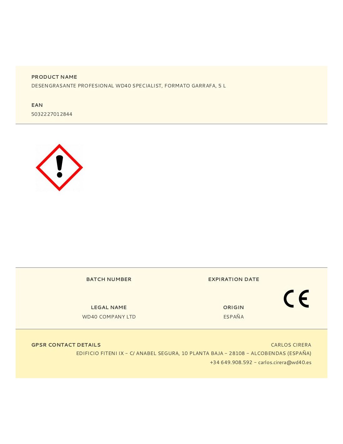 Desengrasante profesional de wd40 specialist, formula concentrada y diluible en formato garrafa de 5 litros