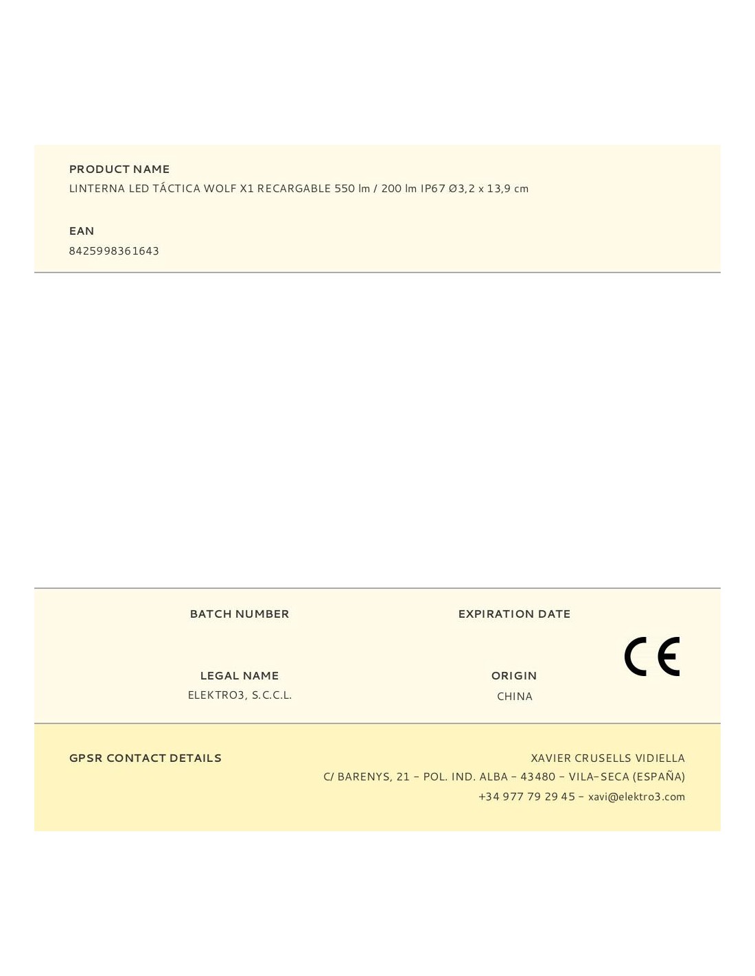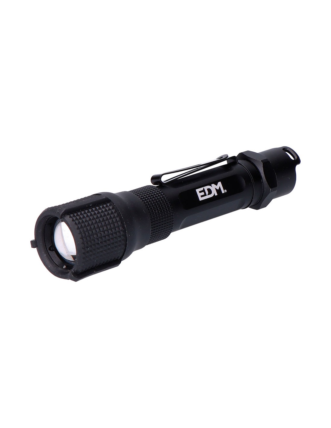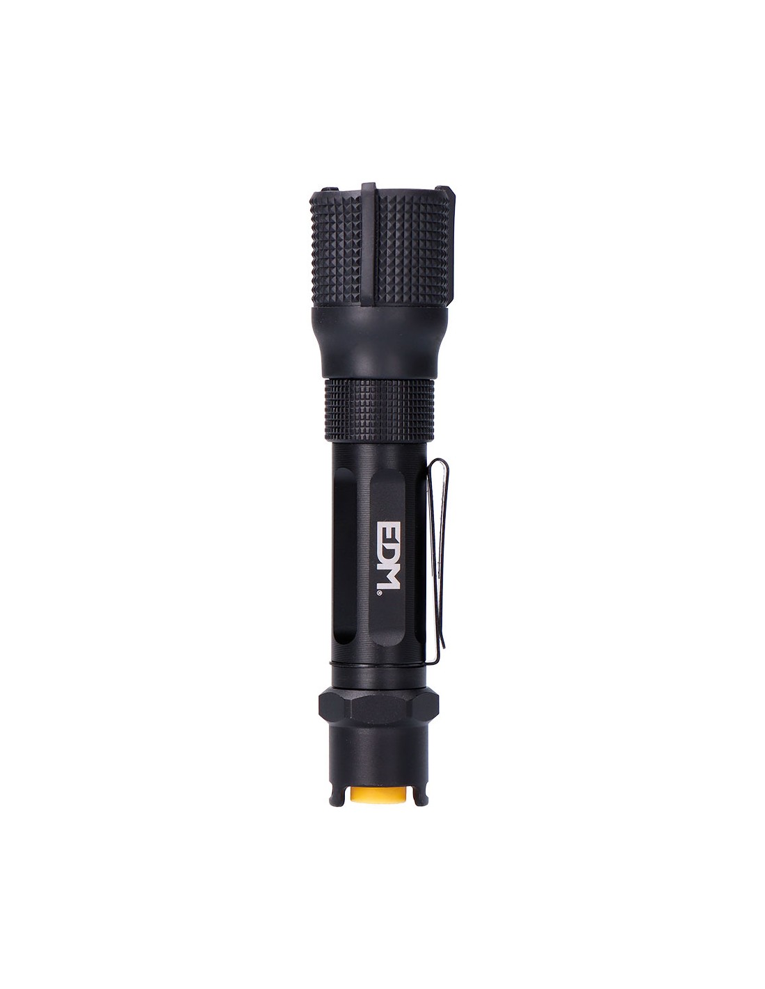 Linterna led táctica mini recargable wolf x1 de 5 w, 7000 k modos brillo: 500 lm / 200 lm / flash con función zoom botón táctico silencioso on / off batería 800 mah de litio incluida cable usb tipo c incluido con clip para colgar hasta 5 h de autonomía carga de 3 h cuerpo de aluminio ip67 sumergible hasta 1 m durante 30 min dimensiones ø32 x 139 mm. se presenta en expositor de 6 uds