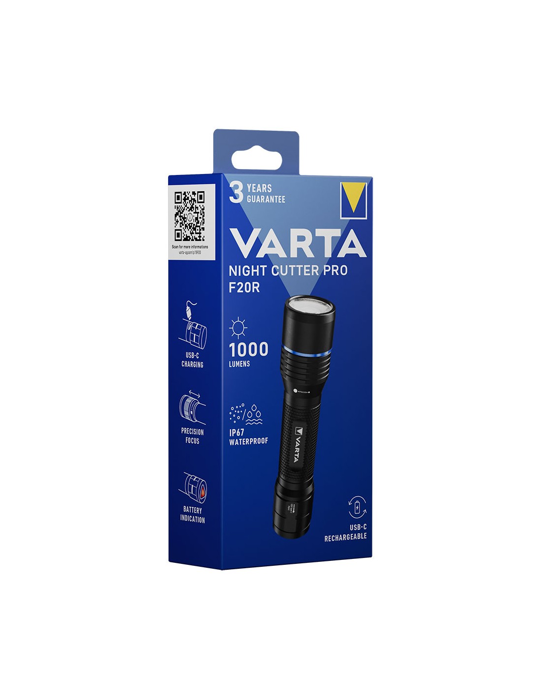 Linterna night cutter pro f20r tactical, 1000 lm, ip67. con sistema de enfoque de precisión y extensión cerámica rompe vidrios. recargable con cable usb-c (incluido). niveles de iluminación 5 (turbo, alto, medio, bajo y estroboscópico), rango de foco 200 m. autonomía 22 horas. material aluminio, pc. dimensiones: ø39 mm del cabezal, longitud 166 mm. incluye cordón y riñonera
