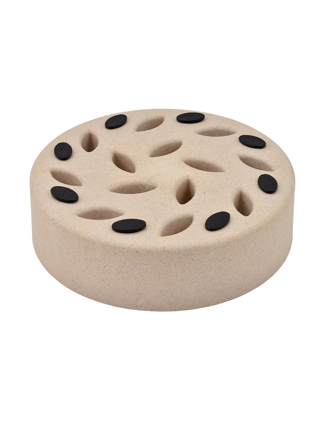 Comedero de alimentación lenta diseñado para que el perro emplee más tiempo en comer y así calmar la ansiedad y mejorar la digestión. compuesto de 50% bambú y con base antideslizante. color beige. capacidad: 800 ml, dimensiones: ø17,5 x 17,5 x 5 cm