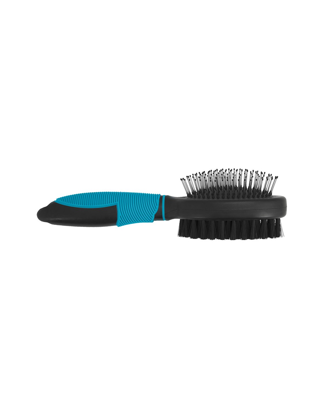 Cepillo doble con forma ovalada. para todo tipo de pelo, apto para perro y gato. las púas del cepillo acaban en forma redondeada para no dañar la piel de nuestra mascota y que el cepillado sea un momento placentero para ella. mango ergonómico para mayor comodidad. ayuda a quitar nudos y deja un pelaje libre de polvo, todo un acabado profesional