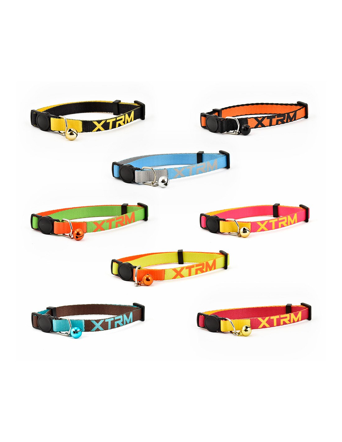 Collar x-trm para gatos con cascabel, con diseños actuales y colores fluor. fabricados con materiales de alta calidad para que no dañen la piel de nuestras mascotas. totalmente ajustable para mayor comodidad y con cierre de seguridad para que pueda liberarse si queda enganchado