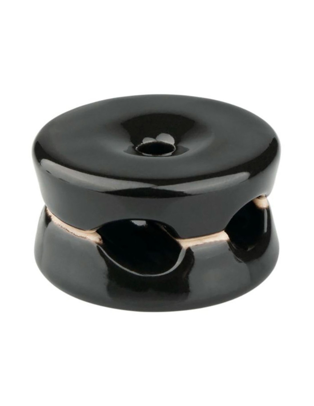 Sujetacables porcelana redondo doble, negro, 5 uds, ø32 x 18,6 mm soportes dobles de porcelana para techo o pared para cable tubular y cable trenzado, con 2 agujeros pasacables ø8 mm. permite crear líneas de instalación de cable hasta el lugar de conexión eléctrica