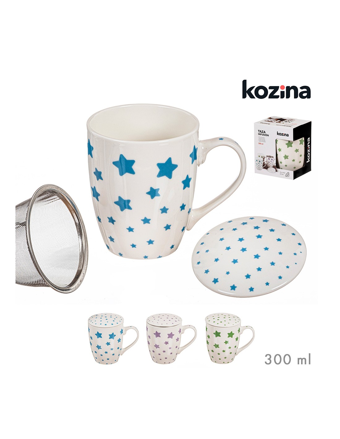 Taza infusión estrellas con filtro y tapa colores surtidos 300 ml