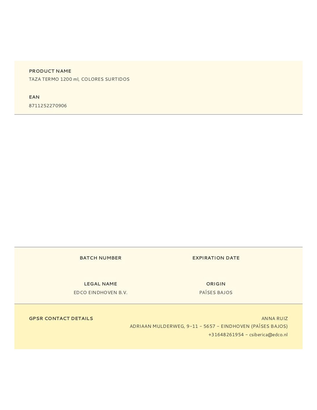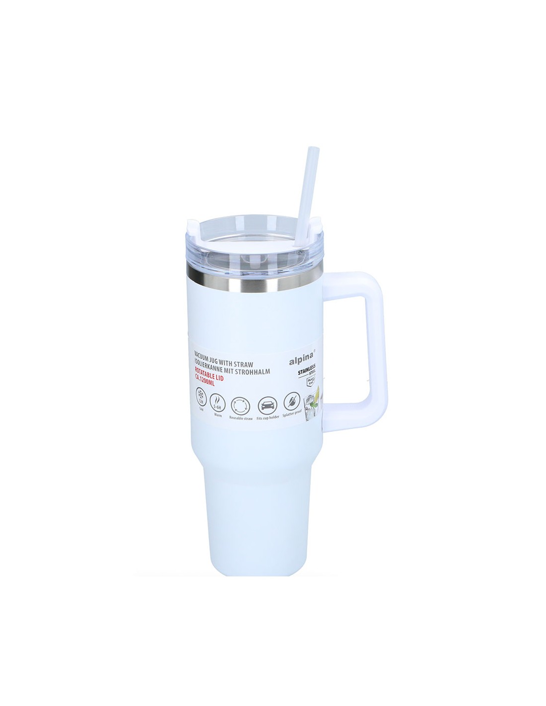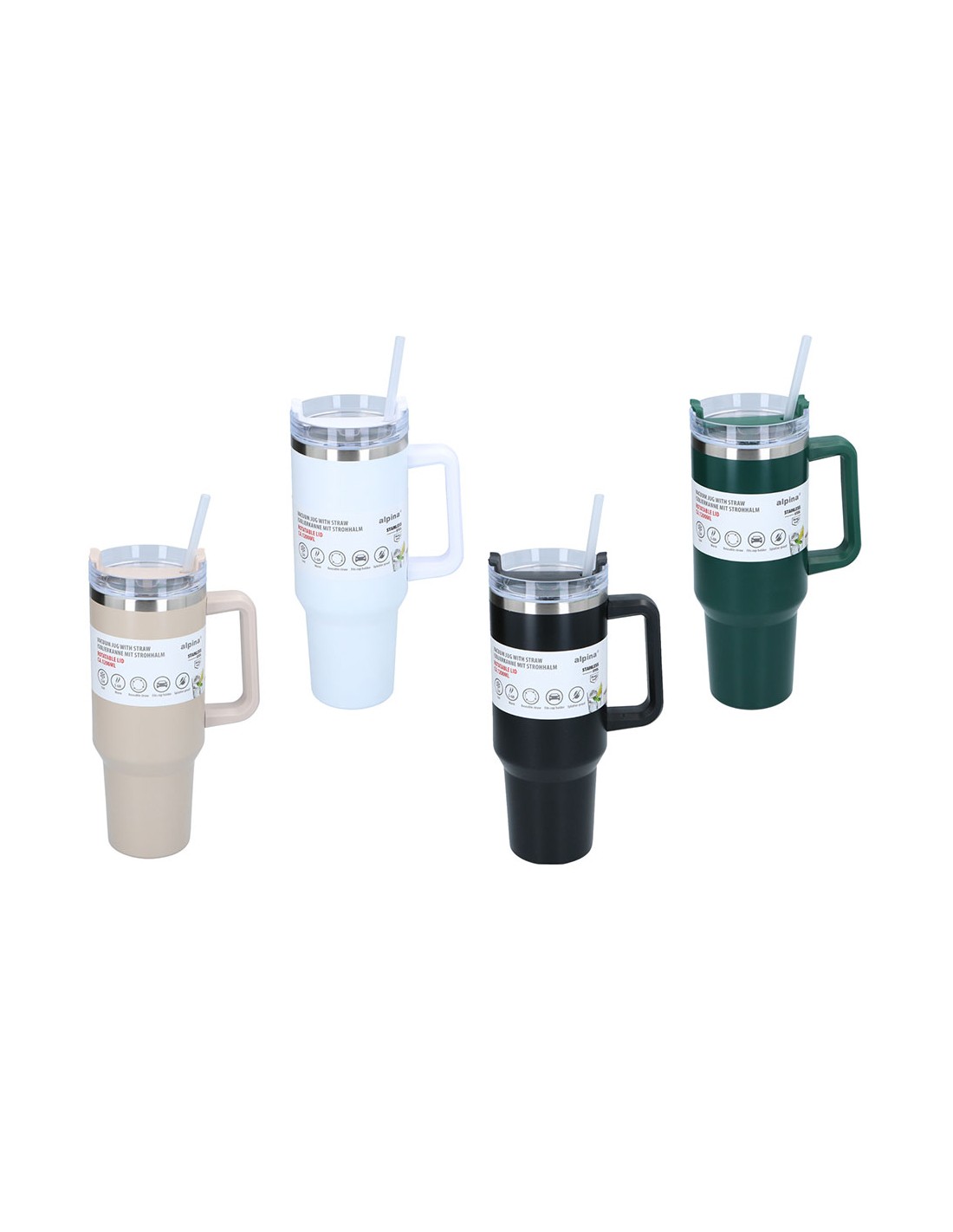 Taza termo de acero inoxidable con pajita 1200 ml, aguanta hasta 12 h frio y entre 5 - 6 h caliente, colores surtidos