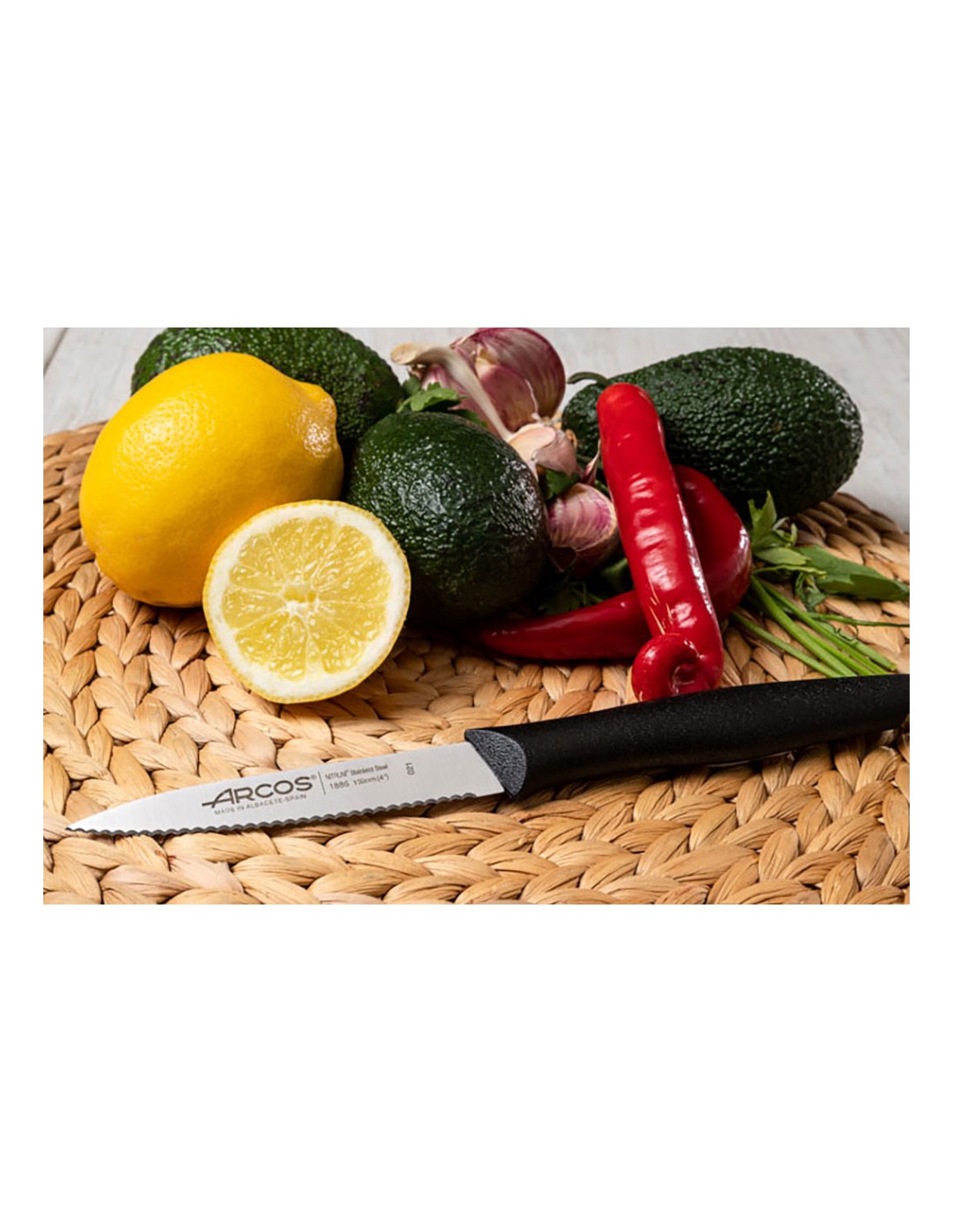 Cuchillo mondador con sierra serie nova 100 mm. hoja de acero inoxidable nitrum® de alta resistencia y durabilidad. especialmente diseñada para pelar frutas y tubérculos. mango ergonómico fabricado en polipropileno