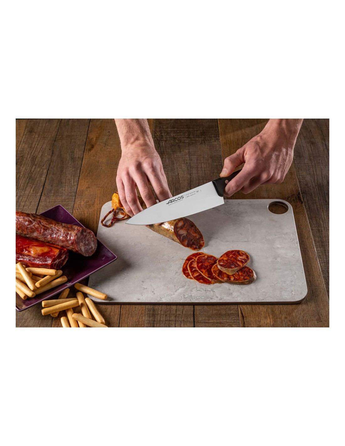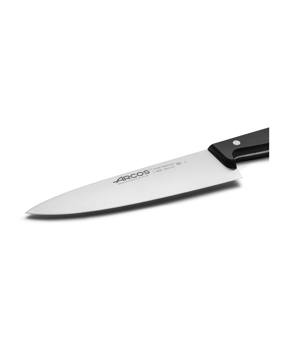 Cuchillo cocinero serie universal pro 200 mm. fabricado con acero exclusivo nitrum® que proporciona una durabilidad superior. resistente a productos químicos y temperaturas extremas. dispone de remaches machihembrados de acero inoxidable anti-corrosión. incluye la tecnología bactiproof silver que actúa como escudo contra los gérmenes y las bacterias de la superficie del mango
