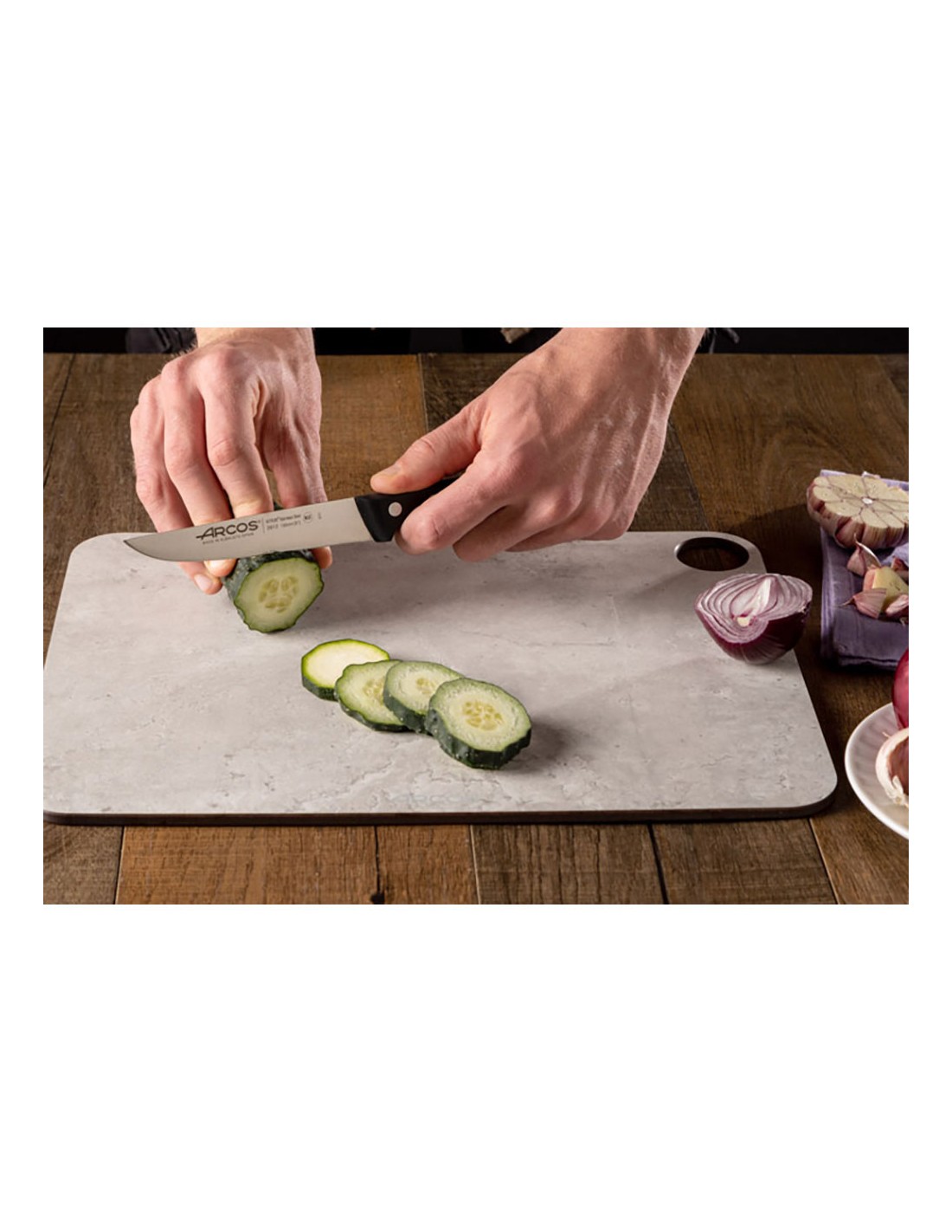 Cuchillo cocina serie universal 130 mm. fabricado con acero exclusivo nitrum® que proporciona una durabilidad superior. mango negro de polioximetileno que muestra una resistencia a las altas temperaturas muy elevada. incluye la tecnología bactiproof silver que actúa como escudo contra los gérmenes y las bacterias de la superficie del mango. mango y hoja unidos mediante remaches de acero inoxidable para evitar la corrosión