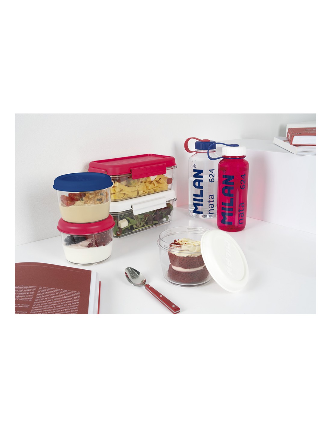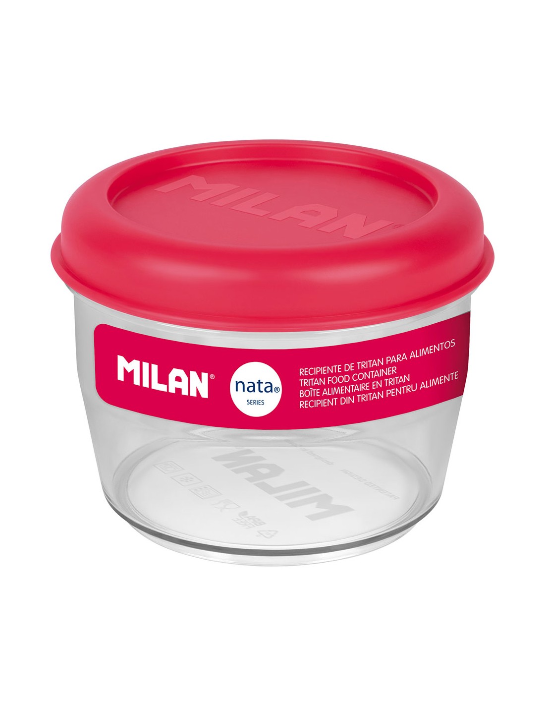 Recipiente redondo transparente de tritán para alimentos. alta resistencia a la rotura y a temperaturas desde los -20°c hasta los 80°c. libre de bisfenol (bpa free). no transmite olores ni sabores. reciclable. apto para calentar en microondas (máx. 80°c) con la tapa abierta para liberar el vapor. apto para congelador. apto para lavar en el lavavajillas (máx. 80°c). las tapas y los recipientes son fácilmente apilables entre sí. cierre hermético con tapa roscada de plástico de color rosa intenso. material del cuerpo del recipiente: plástico tritán. medidas: ø 12 x 9,2 cm. capacidad: 0,5 l