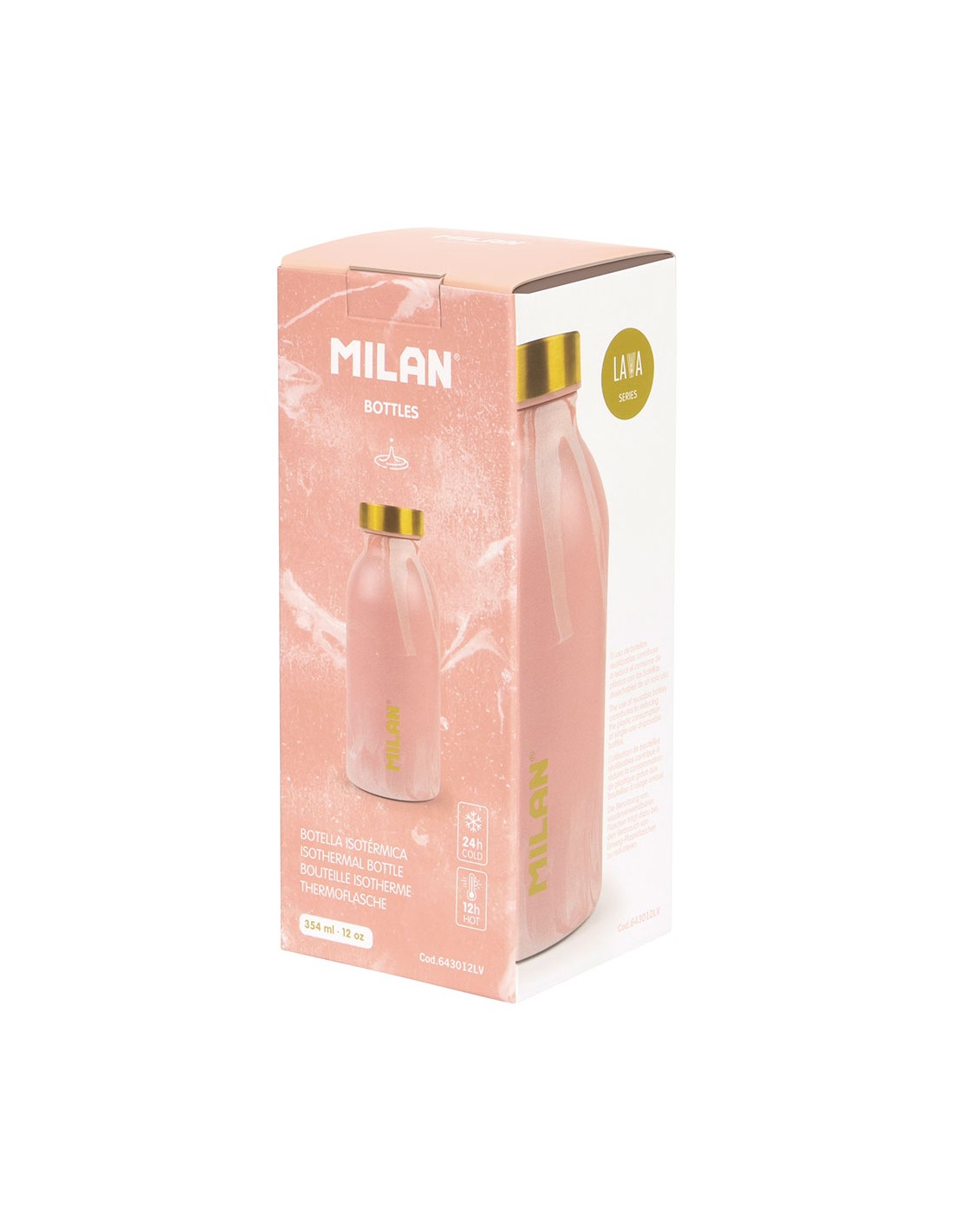 Botella isotérmica con doble pared de acero inoxidable. serie lava, color rosa. capacidad: 354 ml. aislamiento al vacío. mantiene la temperatura del líquido contenido (hasta 12 h bebidas calientes y 24 h bebidas frías). tapón de rosca hermético, con junta de polipropileno. base de silicona antideslizante