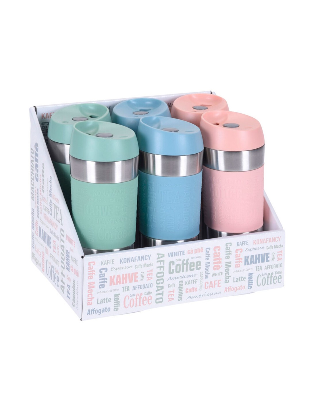 Taza termo, colores surtidos, 350 ml, presentado en expositor de 6 uds