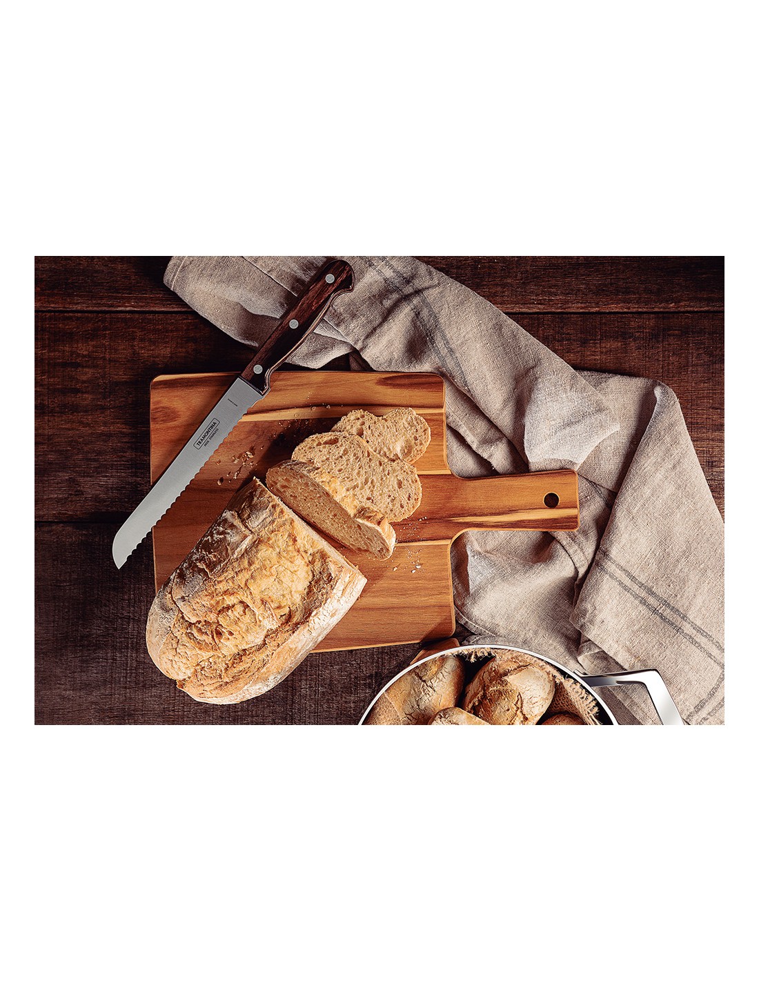 Cuchillo polywood para pan 17,7 cm. con una hoja de acero inoxidable y mango de madera tratada en color castaño. su hoja de acero inoxidable recibe tratamiento térmico, lo que garantiza un filo más duradero y preciso. el mango polywood, fijado con remaches de aluminio, ofrece una resistencia a altas temperaturas e impactos, apto para lavavajillas
