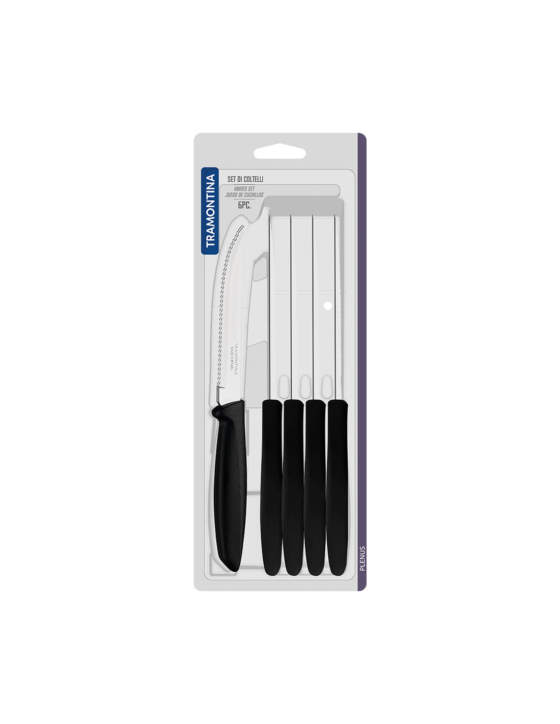 Cuchillos dentados para carne, plenus, hojas de acero inoxidable que garantizan un corte preciso y eficiente. mangos de polipropileno negro, de diseño anatómico. aptos para lavavajillas, 6 uds