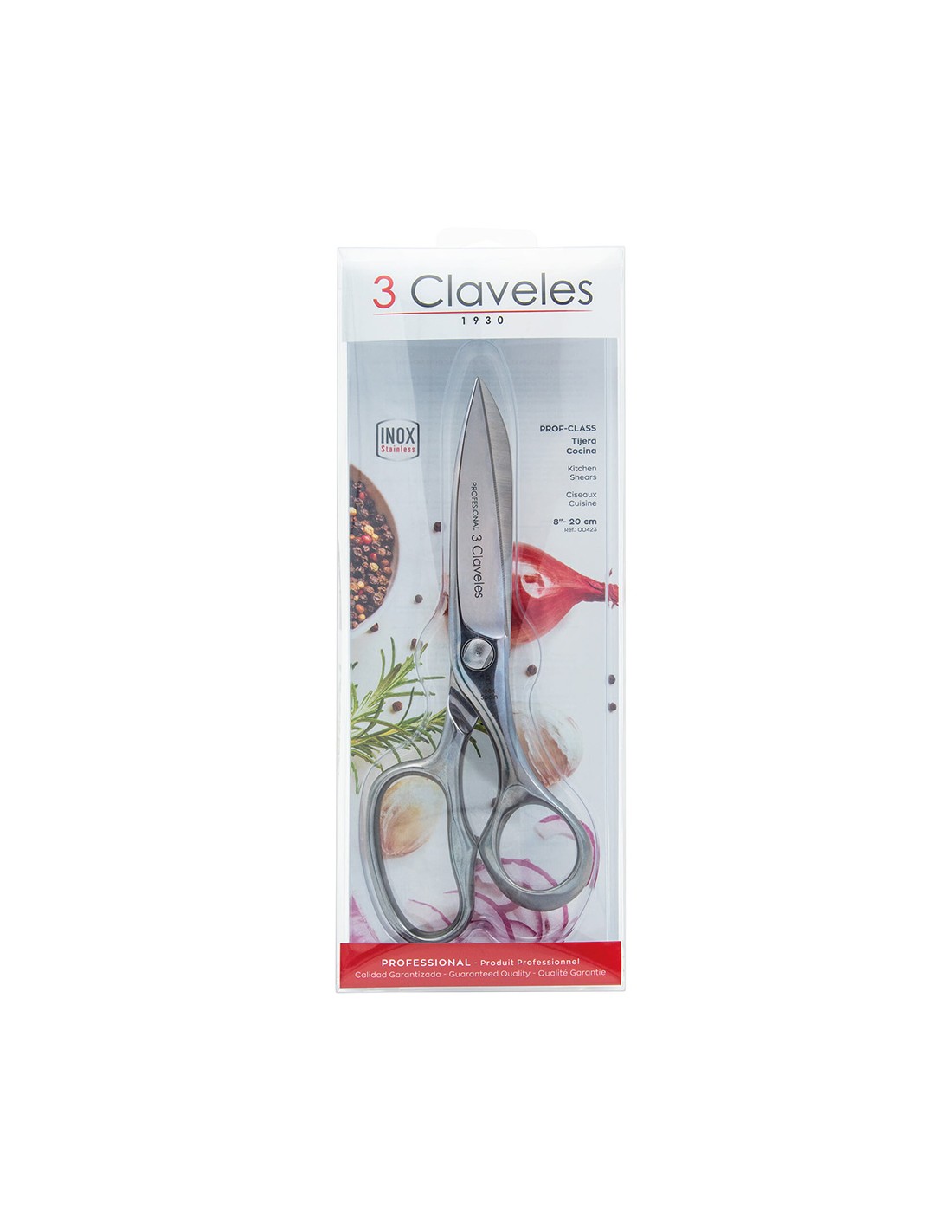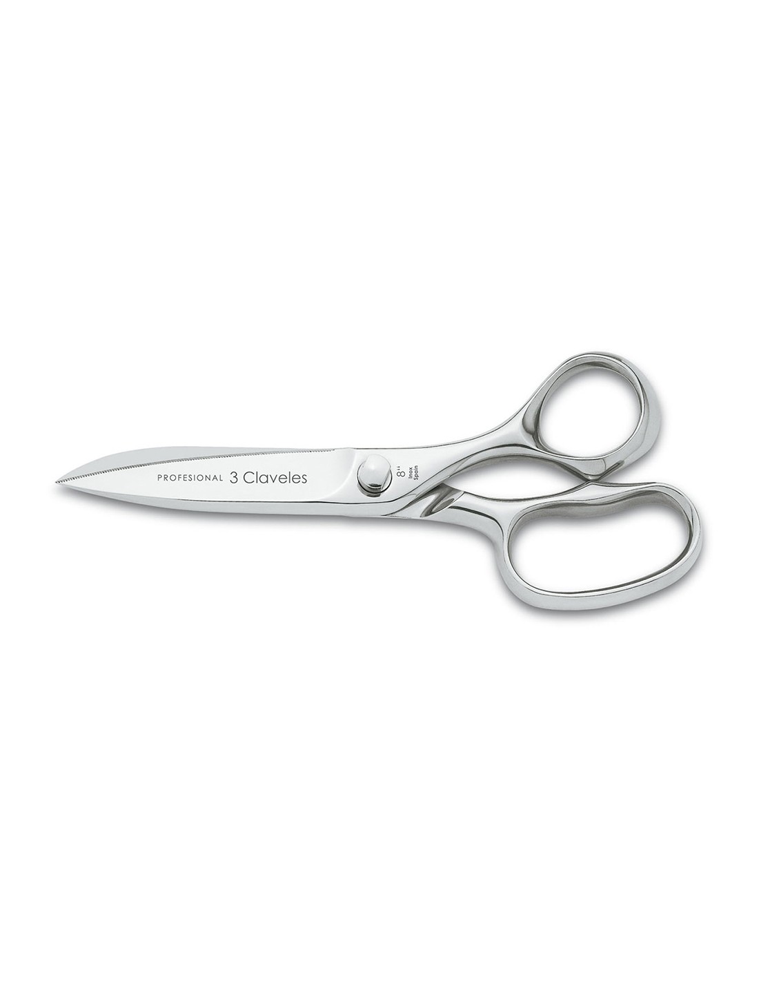 Tijera de cocina clásica profesional, de acero inoxidable aisi 420-4034, diseño ergonómico apta para el corte de todo tipo de alimentos, hojas fuertes y micro dentadas diseñadas para fijar los alimentos. apta para lavavajillas. dimensiones: 20 cm