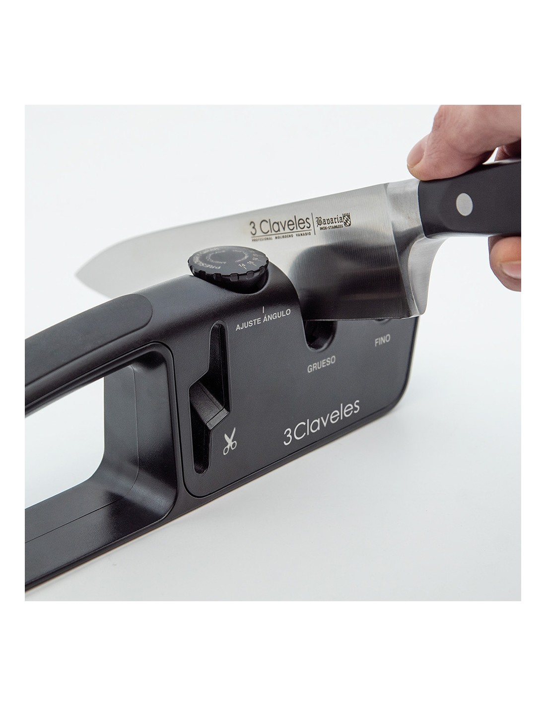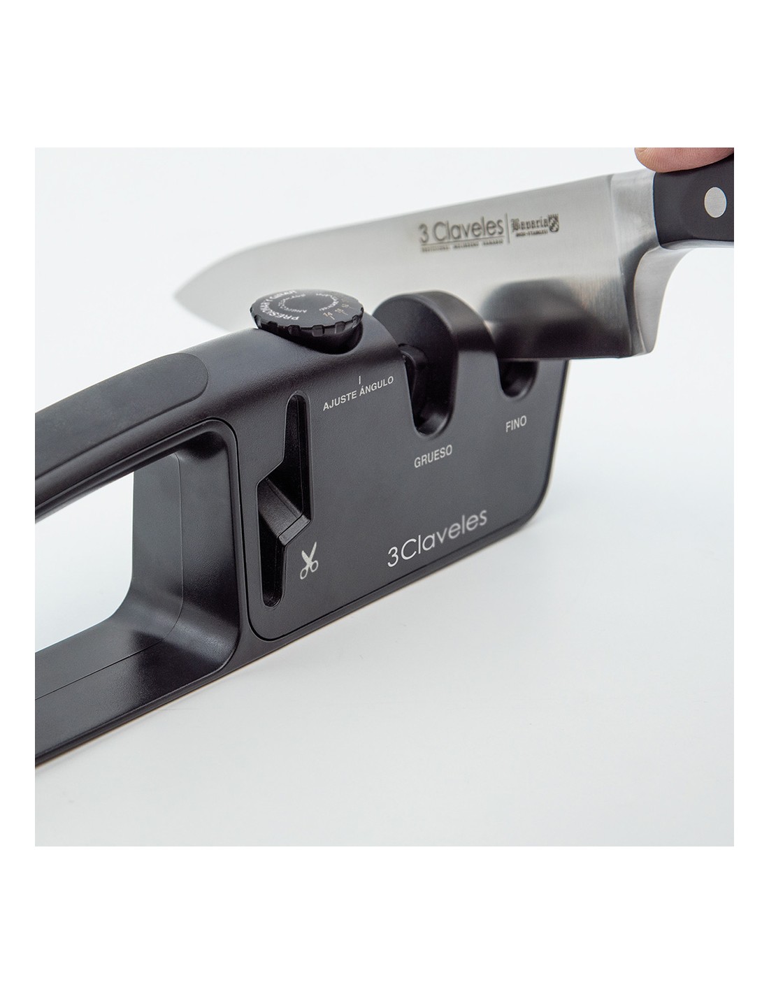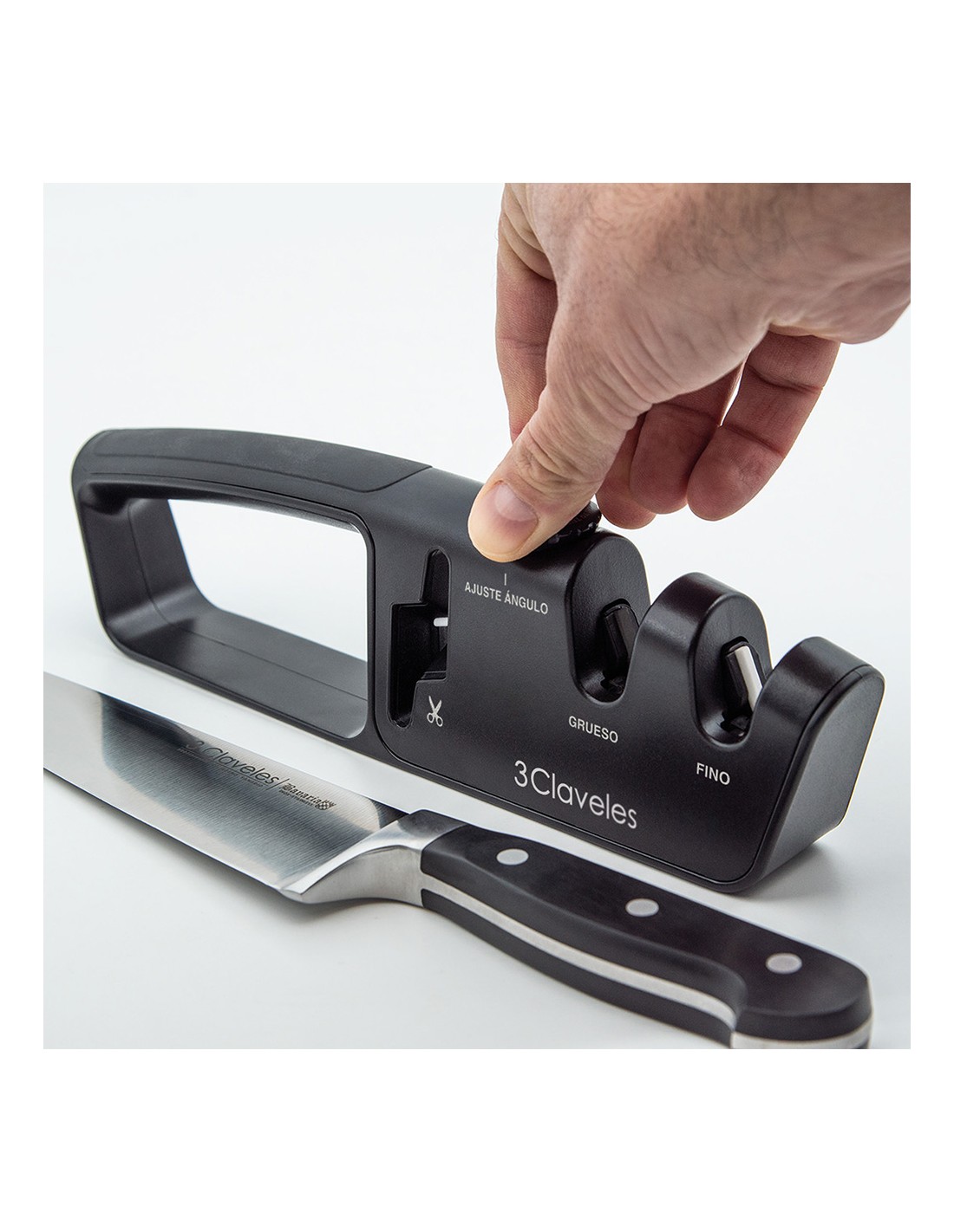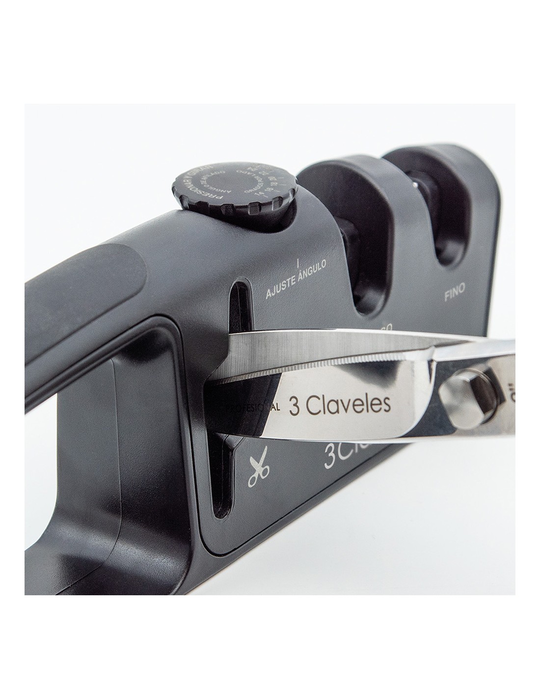 Afilador de tijeras y cuchillos con 6 ángulos ajustables: afilado grueso y fino + tijeras. dimensiones 25 cm