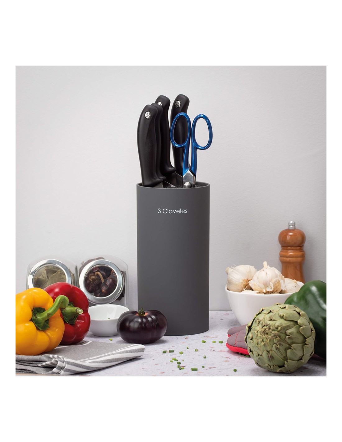 Taco universal gris, para cuchillos de hasta 20 cm de longitud de hoja, interior de fibras lavables, desmonatble, apto para el lavavajillas, cuchillos no incluidos, dimensiones ø11 x 22 cm