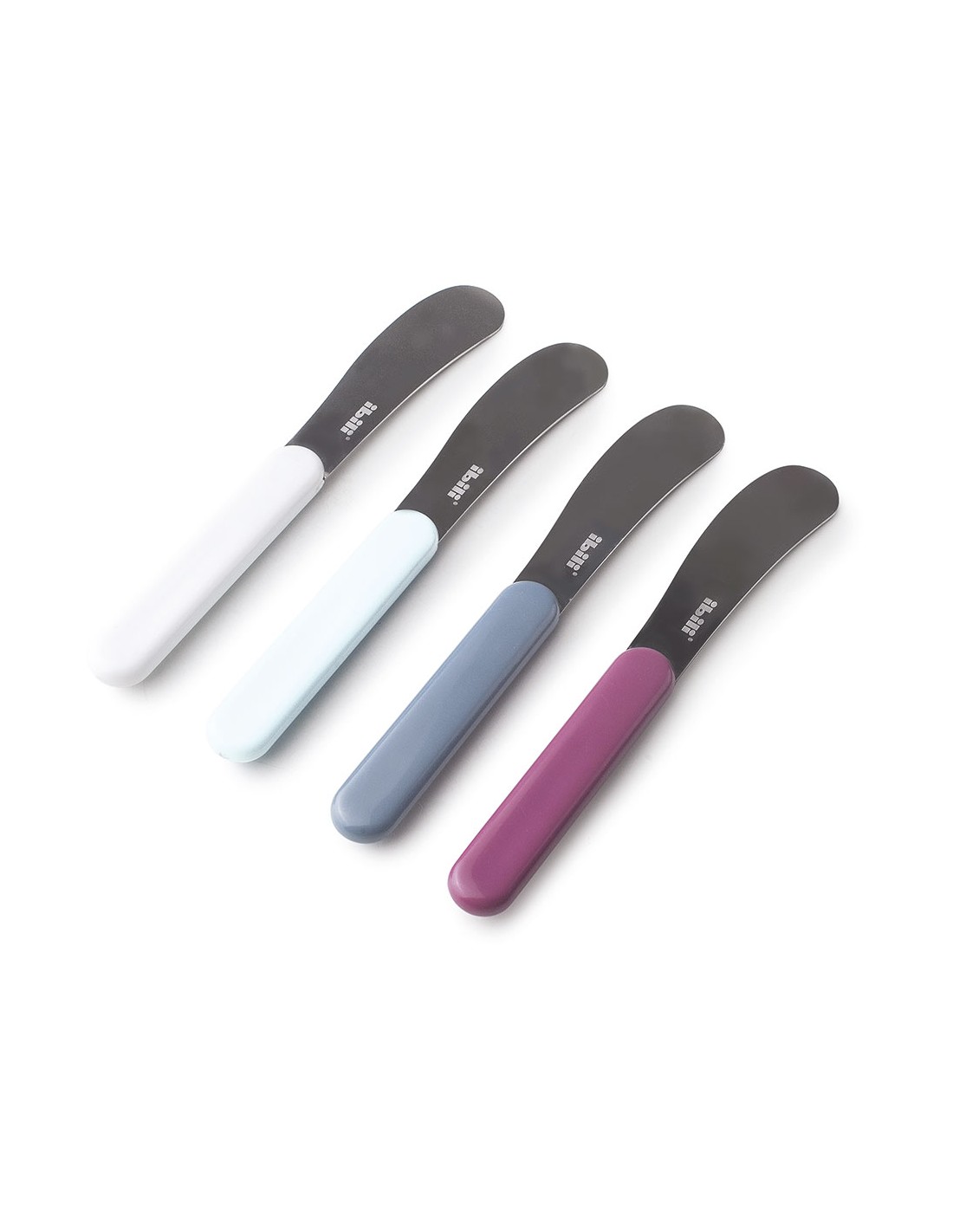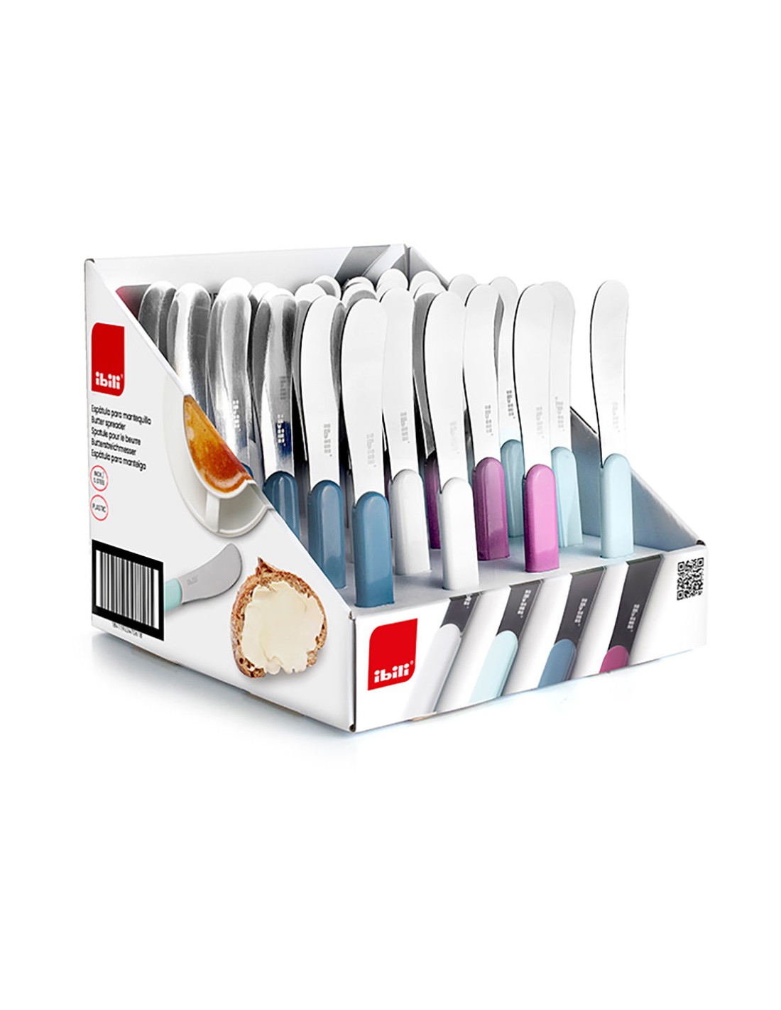 Espátula para mantequilla, de acero inoxidable y plástico medida: 14,8 cm colores surtidos. presentado en expositor 24 uds