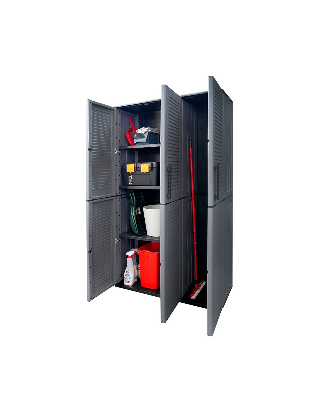 Armario alto con estantes y portaescobas línea easy de polipropileno gris oscuro 102 x 370 x 163 cm