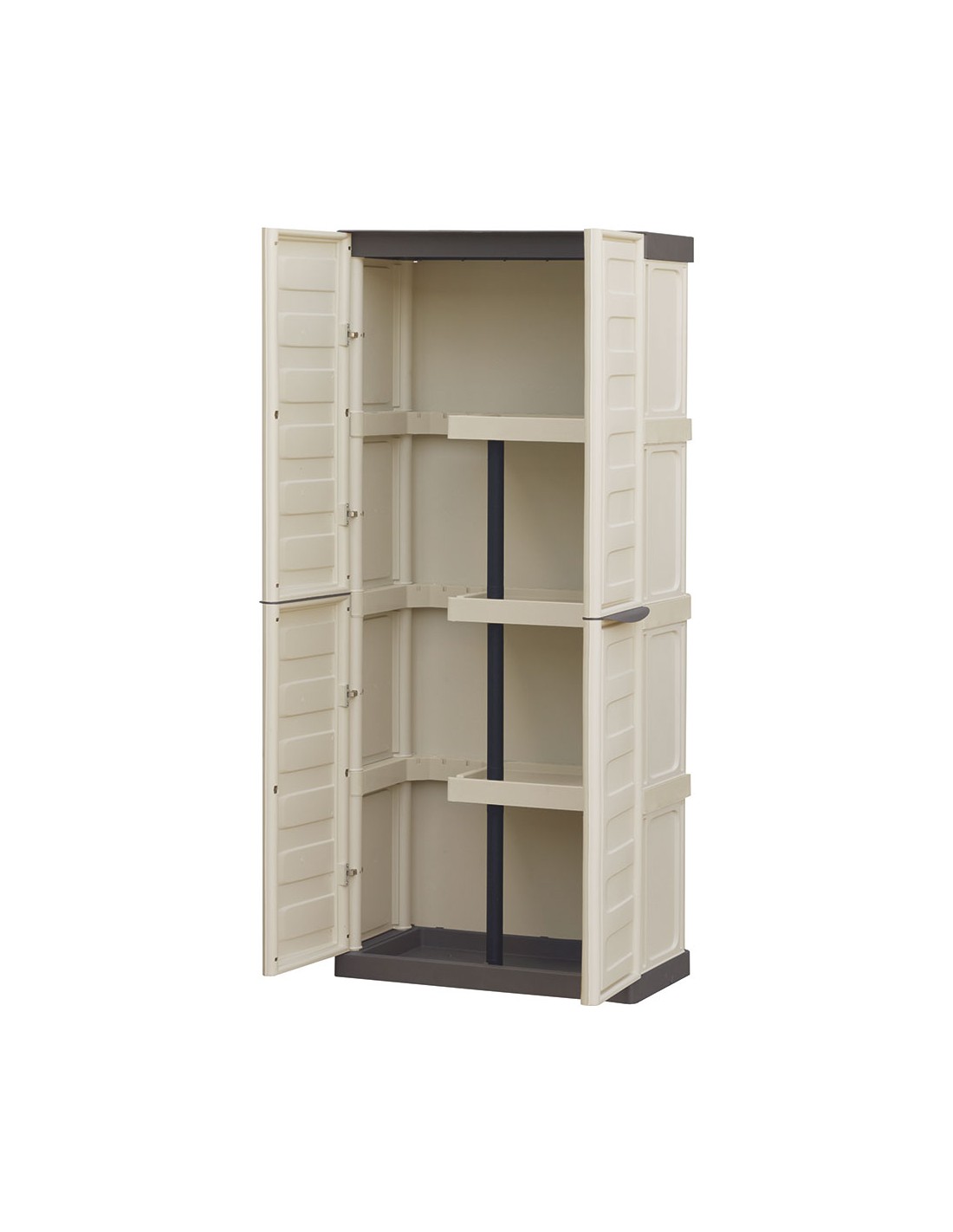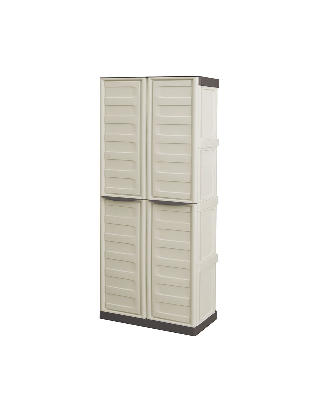Armario alto con estantes y portaescobas línea spazio de polipropileno beige y marrón, 70 x 39 x 165 cm