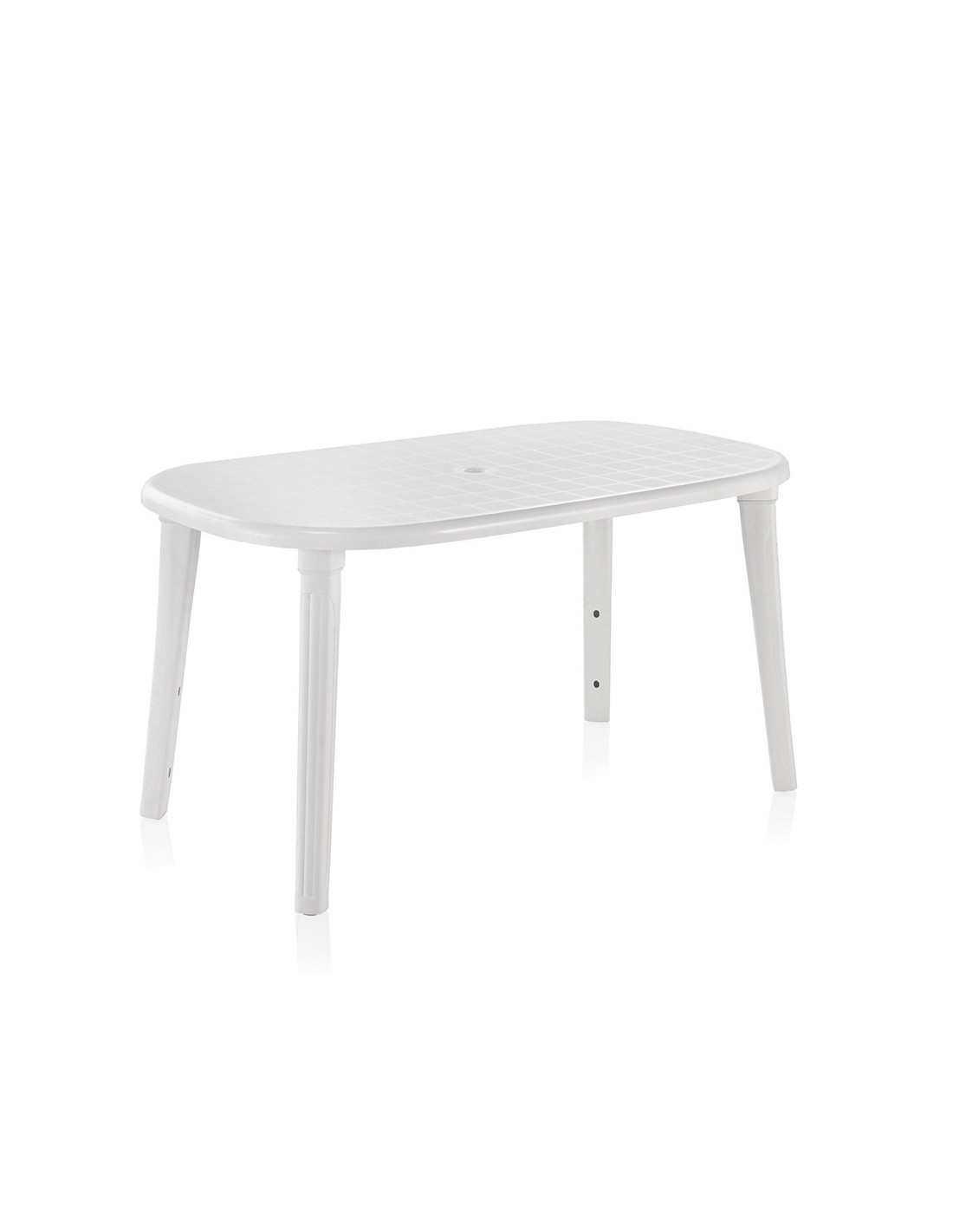 Mesa ovalada, modelo cancún, color blanco, material resina, fácil de montar y de desmontar, cuenta con orificio central para sombrillas. resistente a la intemperie. dimensiones: 140 x 80 x 73 cm