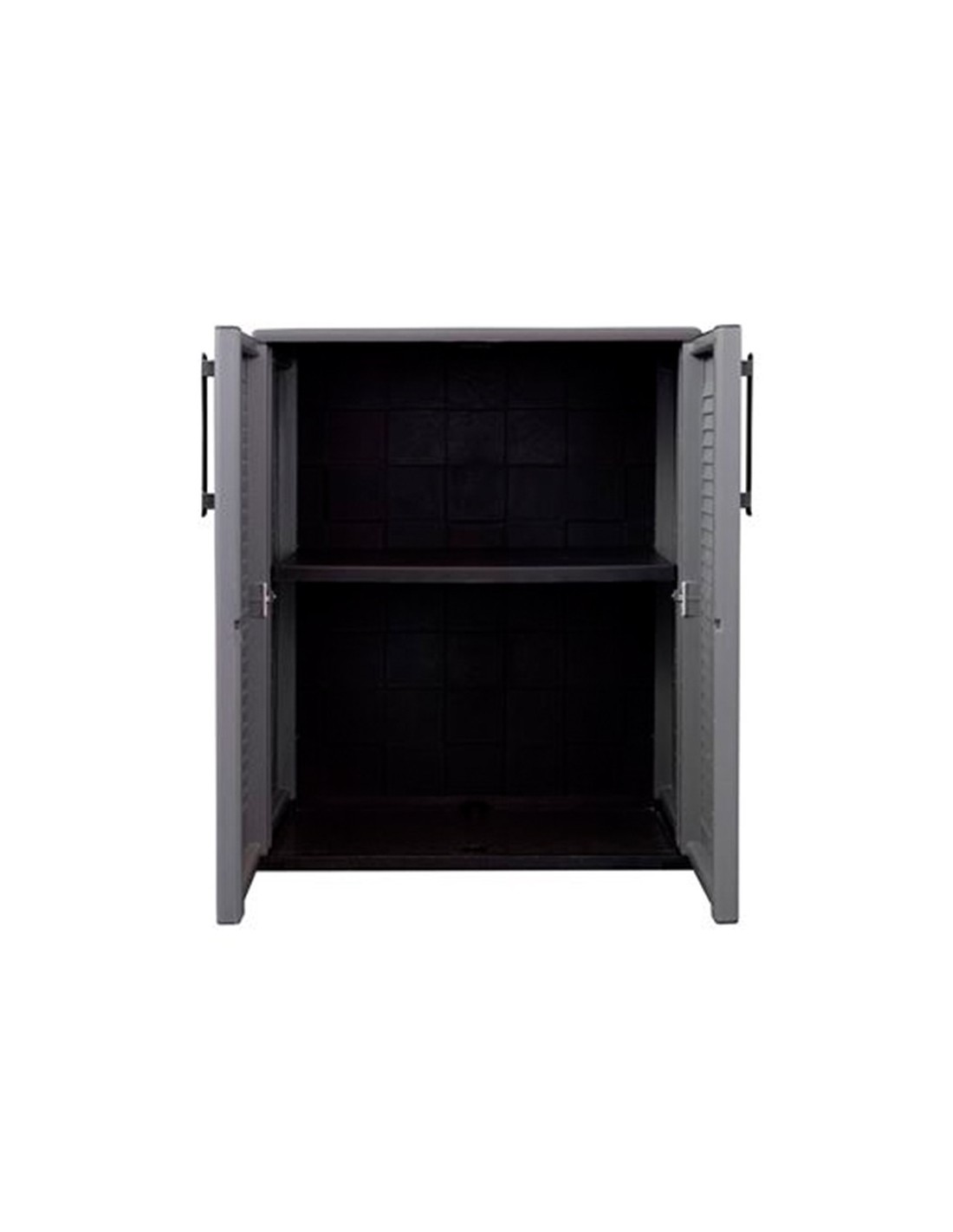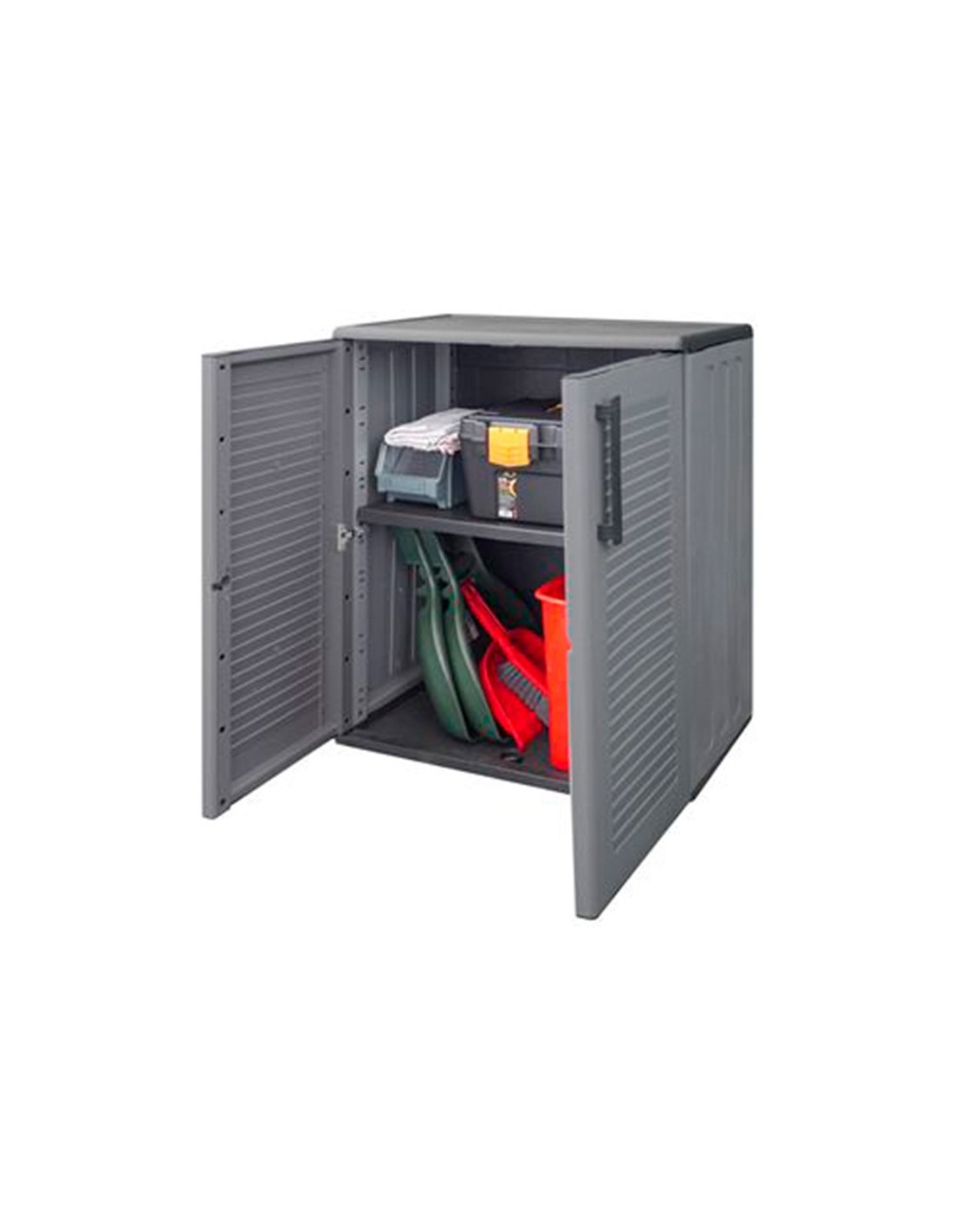 Armario bajo fabricado en polipropileno, material reciclable, lavable, resistente al frío y a la intemperie. equipado con bisagras de acero, estante interior ajustable, capacidad de carga de 20 kg por estante, gris oscuro, 68 x 37 x 84 cm