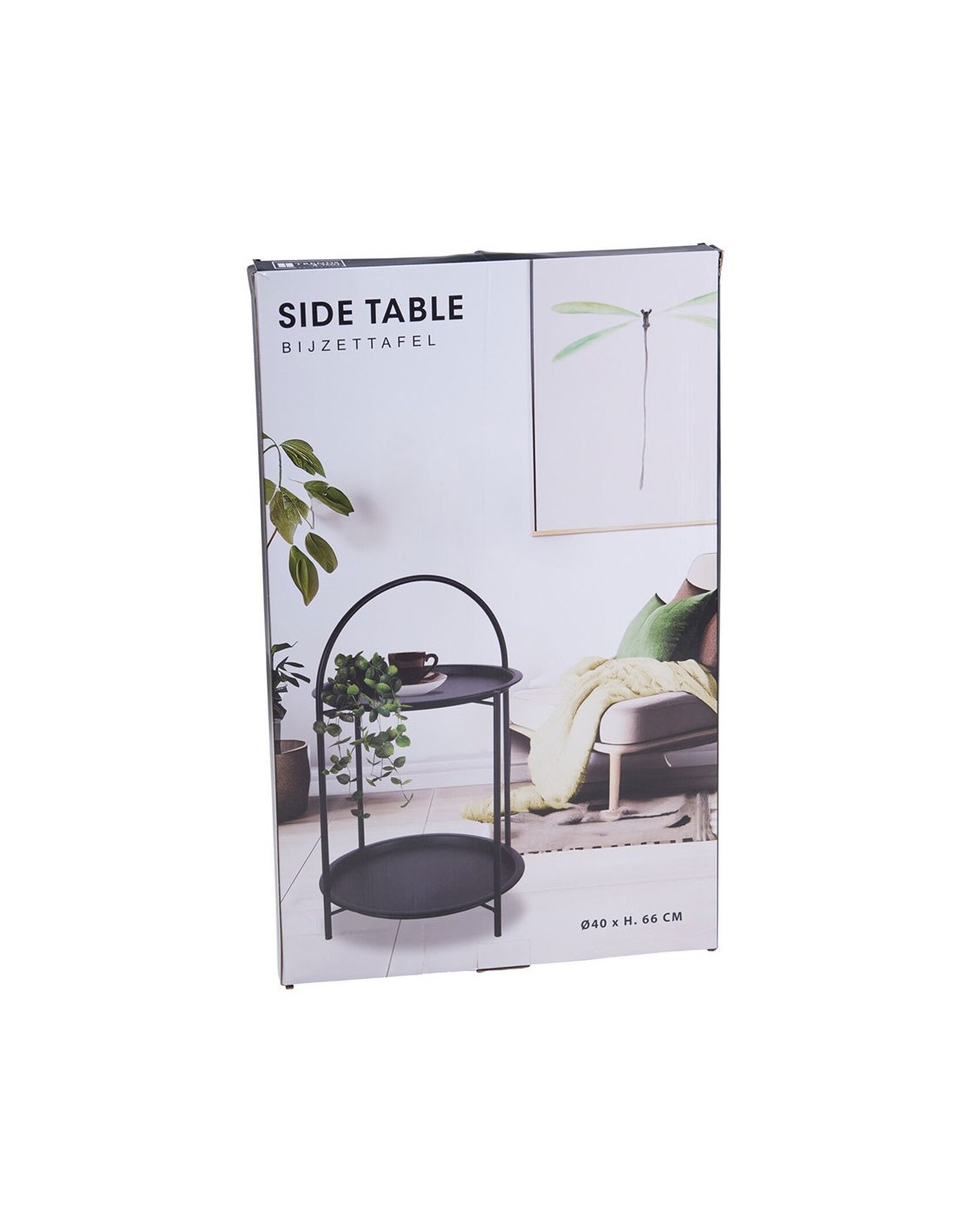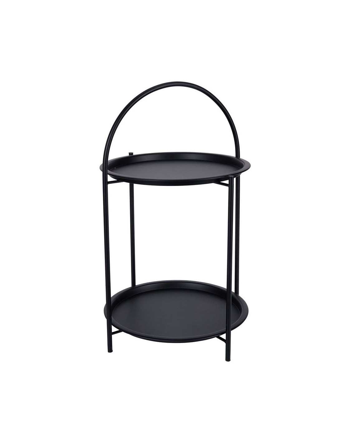 Mesa auxiliar negra con 2 alturas y asa superior fabricada en metal ø40 x 66 cm