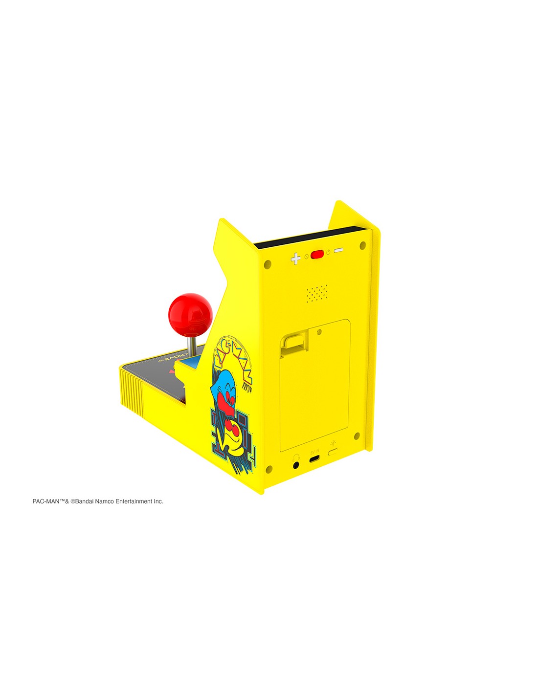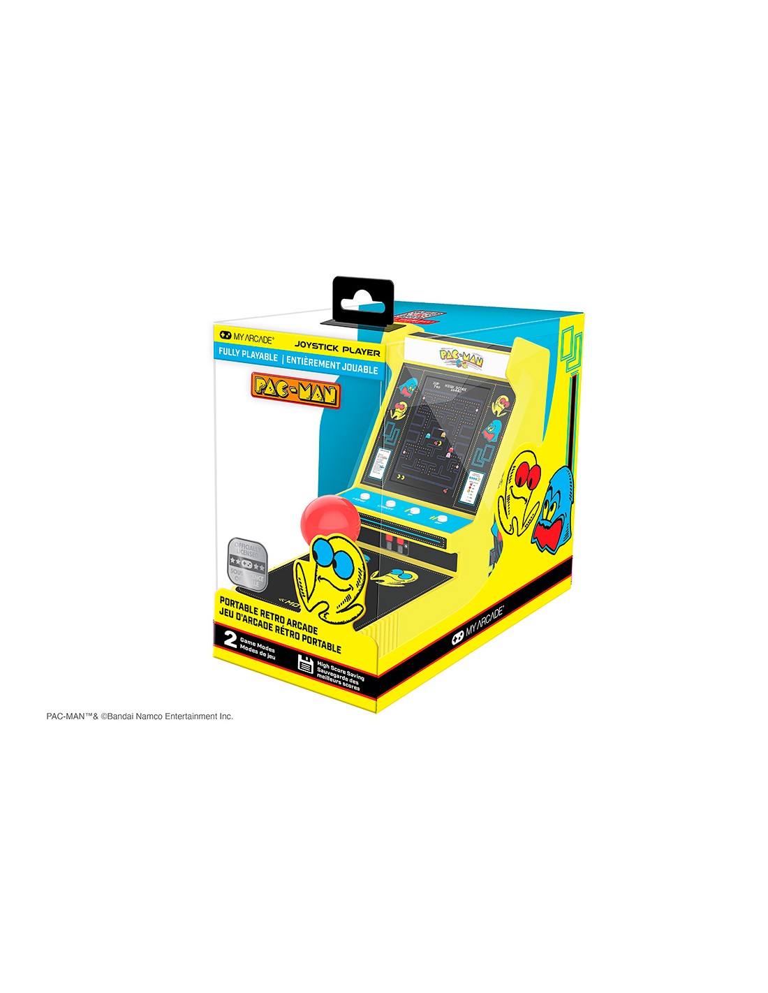 Joystick player pacman título con licencia oficial. pantalla vertical 3,5" de alta resolución a todo color. presenta ilustraciones inspiradas en el gabinete arcade original. contiene 2 modos de juego: clásico y acelerado. altavoz incorporado con control de volumen. puerto de auriculares de 3,5 mm. brillo de pantalla ajustable. alimentado por 4 pilas aa (no incluidas) o un cable usb-c (no incluido). ideal para cualquier sala de juegos, oficina o vitrina. incluye guía de usuario