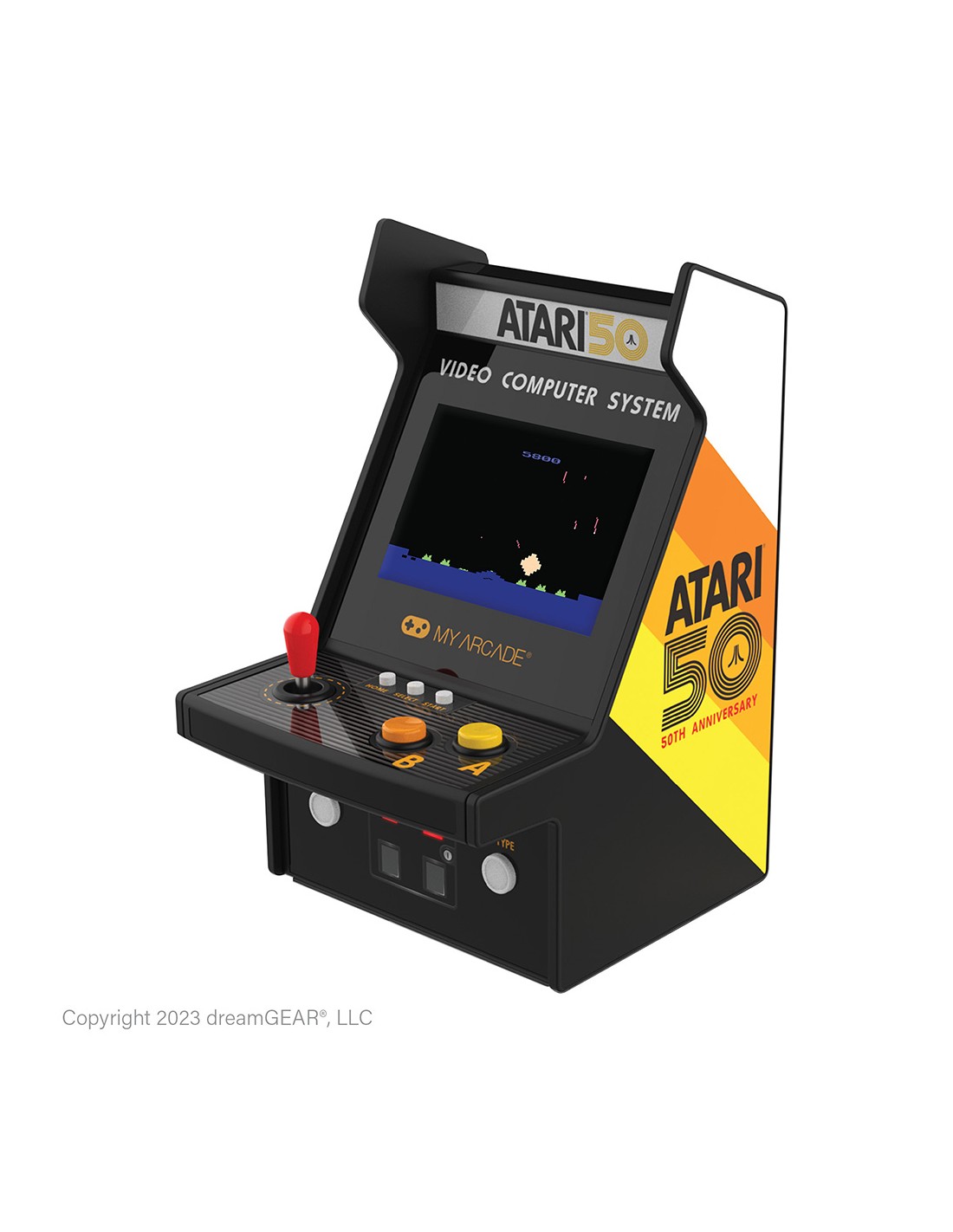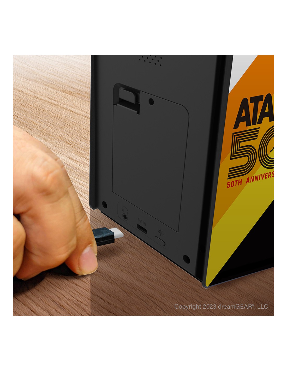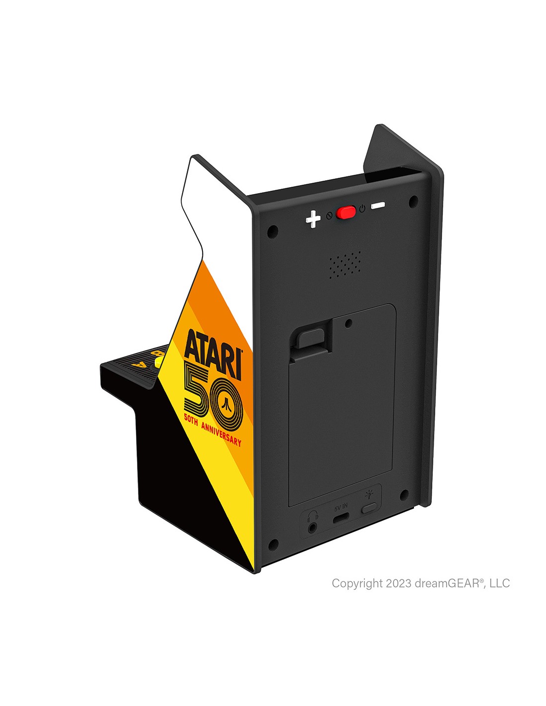 Micro player pro 6,75 inch atari portable retro arcade (100 juegos en 1) título con licencia oficial. pantalla 2,75" de alta resolución a todo color. presenta ilustraciones inspiradas en el gabinete arcade original. contiene 100 juegos, entre ellos: asteroids®, centipede®, millipede®, breakout®, missile command®, tempest® y muchos más. altavoz incorporado con control de volumen. puerto de auriculares de 3,5 mm. brillo de pantalla ajustable. alimentado por 4 pilas aa (no incluidas) o un cable usb-c (no incluido). ideal para cualquier sala de juegos, oficina o vitrina. incluye guía de usuario