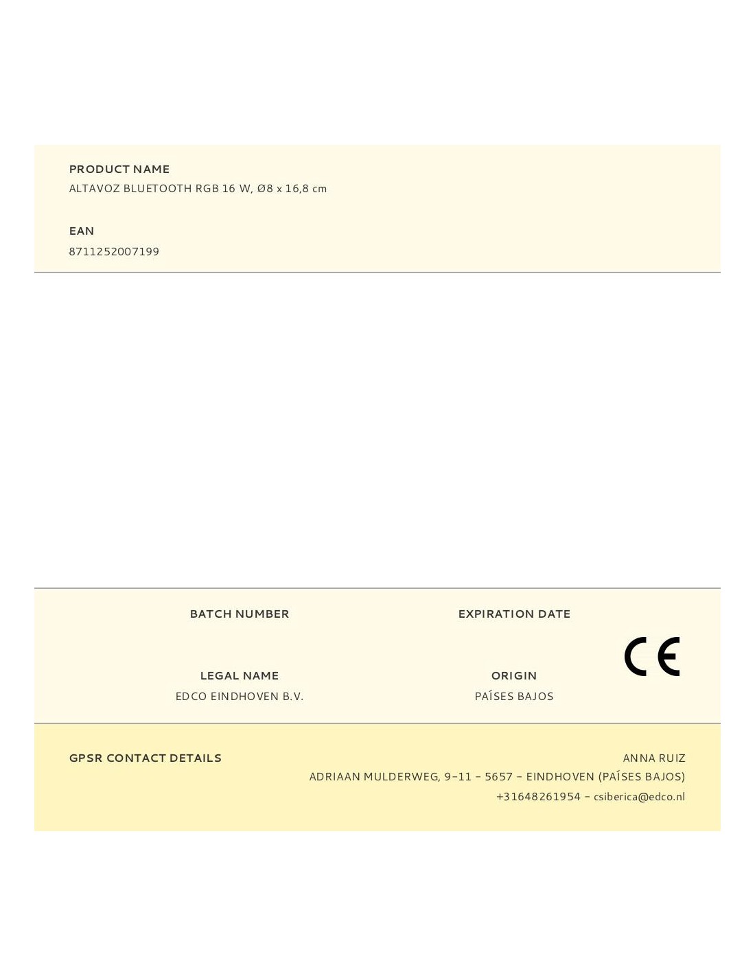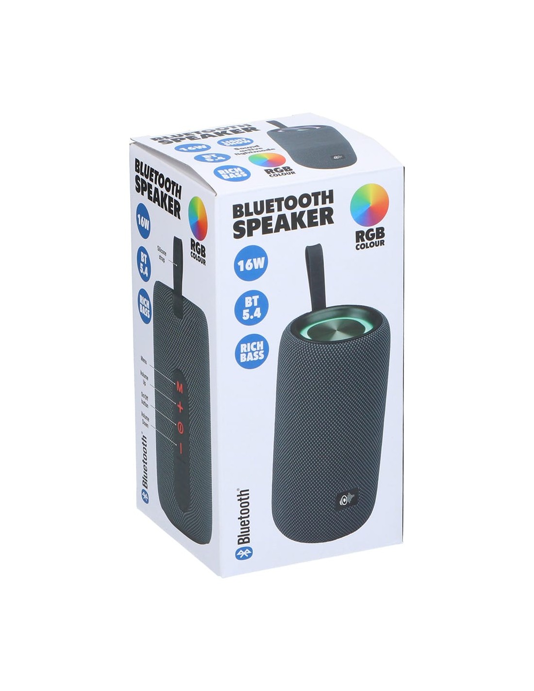 Altavoz bluetooth rgb 16 w, asa de transporte de silicona, 6 leds, bateria integrada de 1200 mah, cable de carga usb-c (incluido), tiempo de carga 5 h, tiempo de reproducción 1,5 - 2,5 h, dimensiones ø8 x 16,8 cm