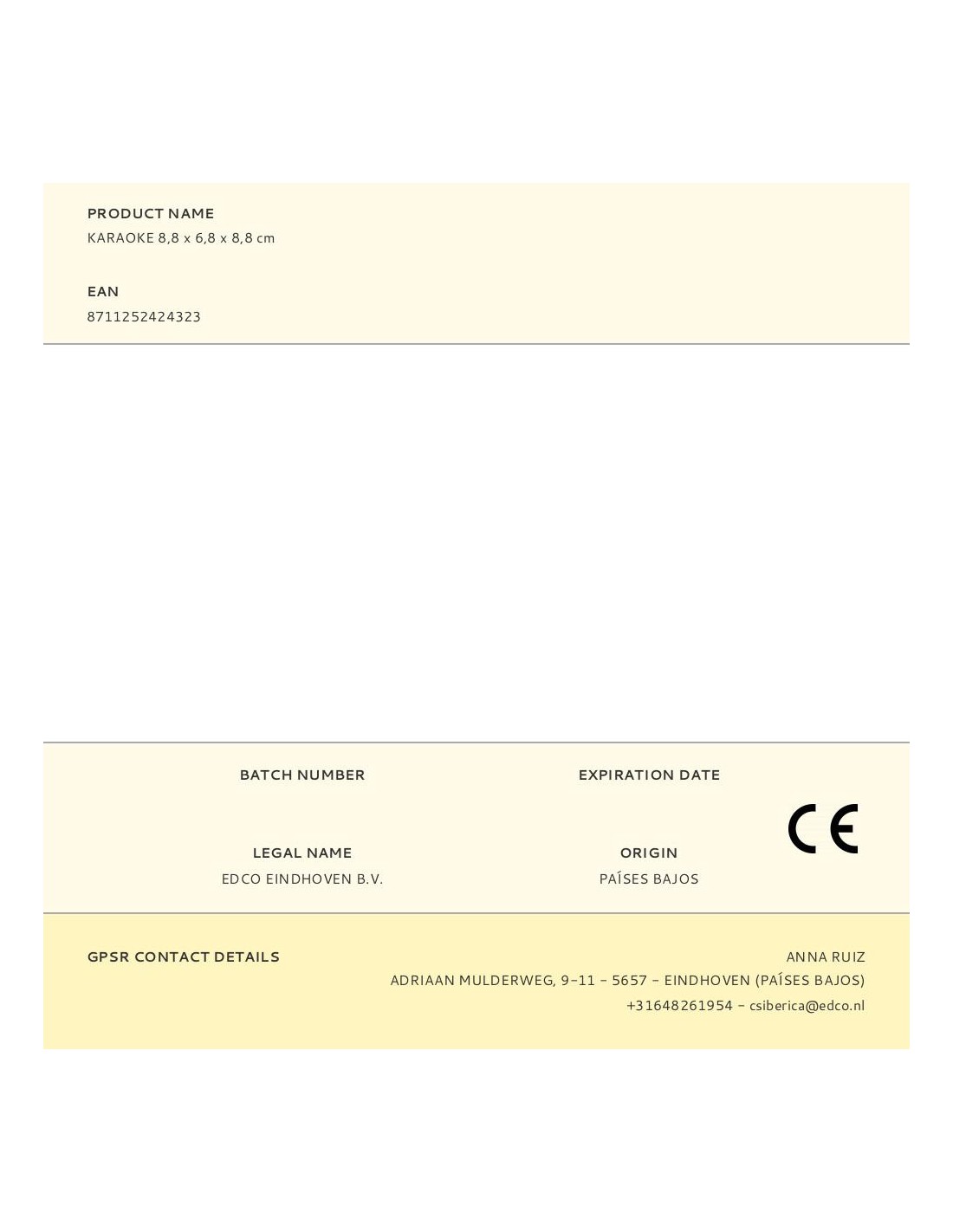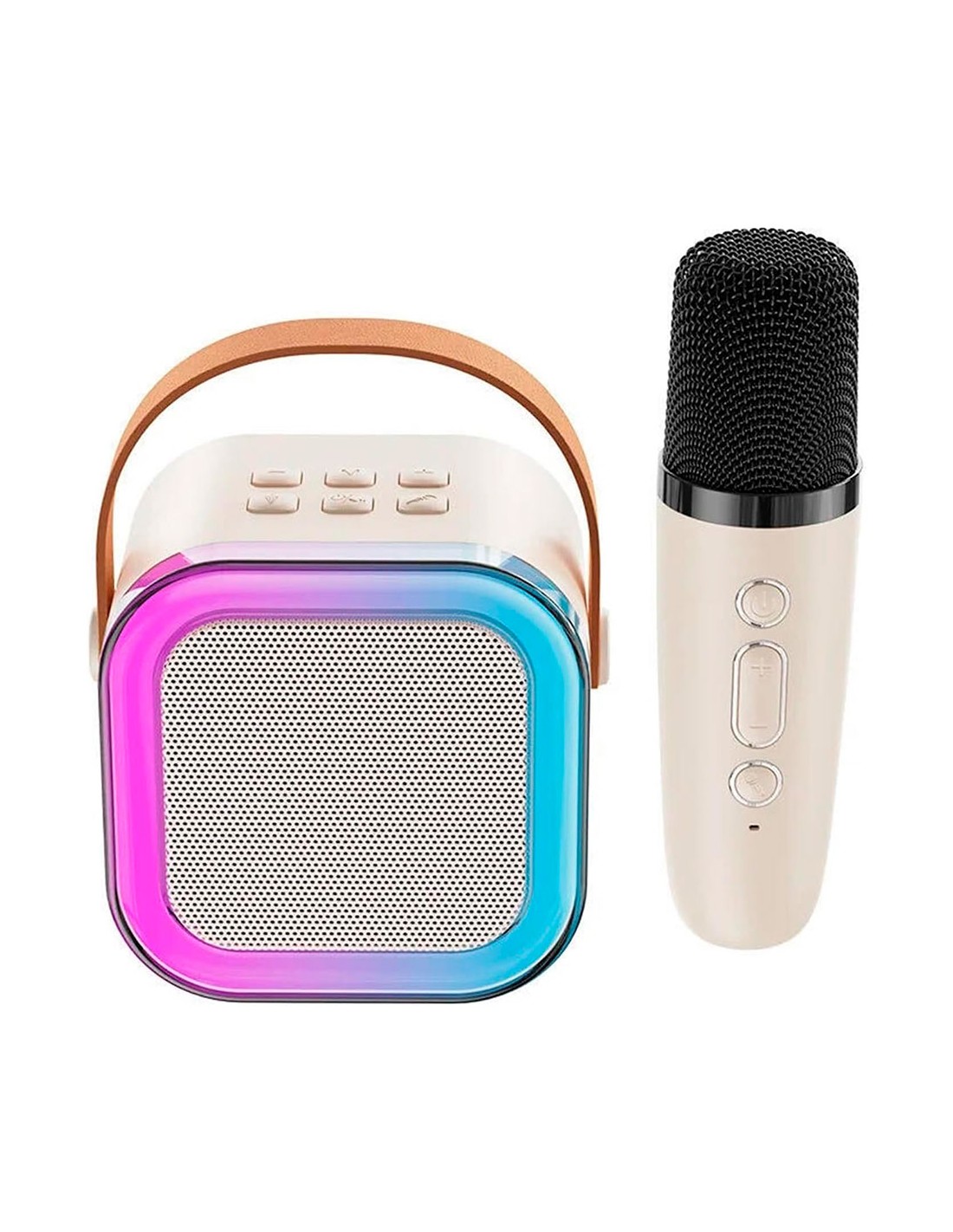 Karaoke mini 5 w, alcance de señal bluetooth: 10 m, 5 efectos de sonido, 8 leds rgb, capacidad de la batería del altavoz: 800 mah, capacidad de la batería del micrófono: 400 mah, tiempo de reproducción 4-5 h, tiempo de carga 4 h, conexión cable usb-a (incluido), asa de transporte, salida aux, entrada de tarjeta tf, tamaño altavoz 8,8 x 6,8 x 8,8 cm, tamaño del micrófono ø37 x 13,5 cm