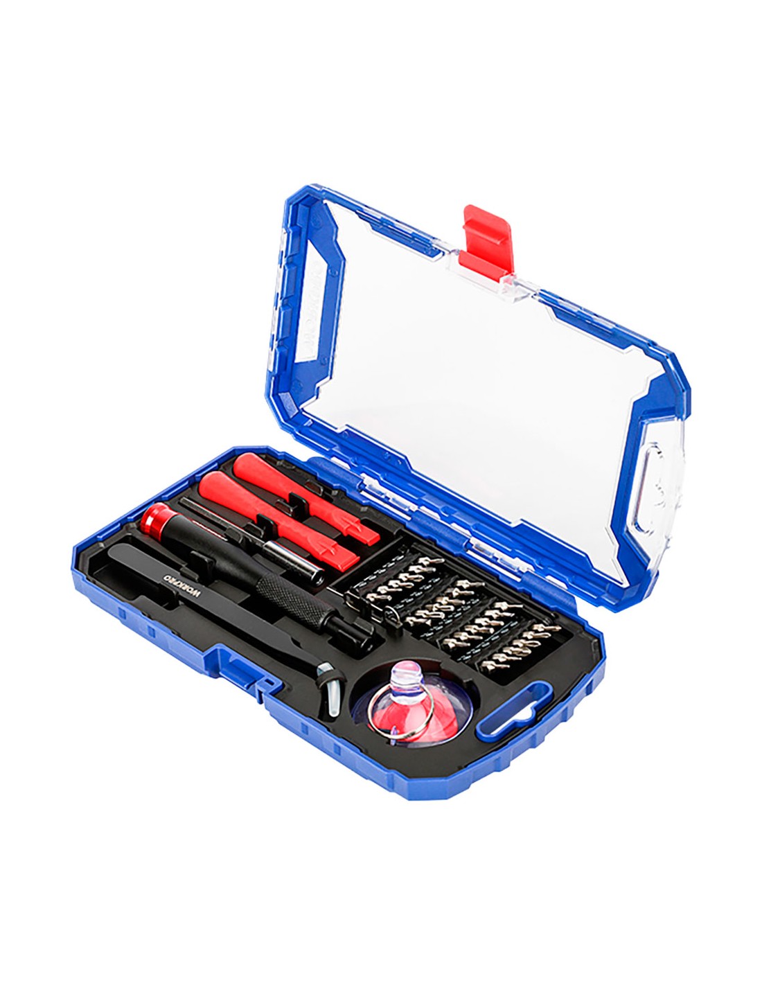 Herramientas reparación teléfonos móviles, juego 32 piezas contiene: 1 barra de extensión 4 x 75 mm 1 destornillador de precisión de aluminio 2 mini palancas 1 pinza 1 ventosa 1 púa de apertura triangular 1 abre bandejas tarjetas sim 24 puntas estándar cromo-vanadio de 4 mm: tt7 planas sl1, sl2 allen: h1.5, h2 phillips ph000, ph00, ph0, ph1 tipo triwing y000, y00, y0 torx: t2, t3, t4, t5, t6, t8, t10 tta27 pentalobe: p0.8, 0.8, 1.2, 1.5