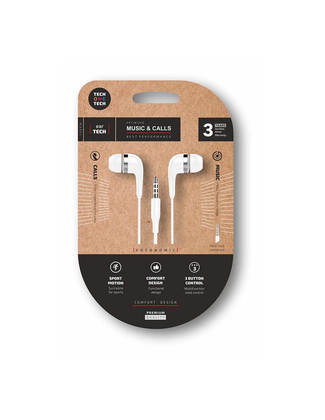 Auriculares eartech intraurales, ergonómicos, con conexión mini-jack de 3,5 mm, estéreo, con micrófono -42 db ±3 db, controles de volumen y tercer botón multifunción amplio rango de frecuencias 20 hz - 20 khz impedancia 32 ohmios ±15% compatibles con apple, android y windows cable 1,2 m blancos