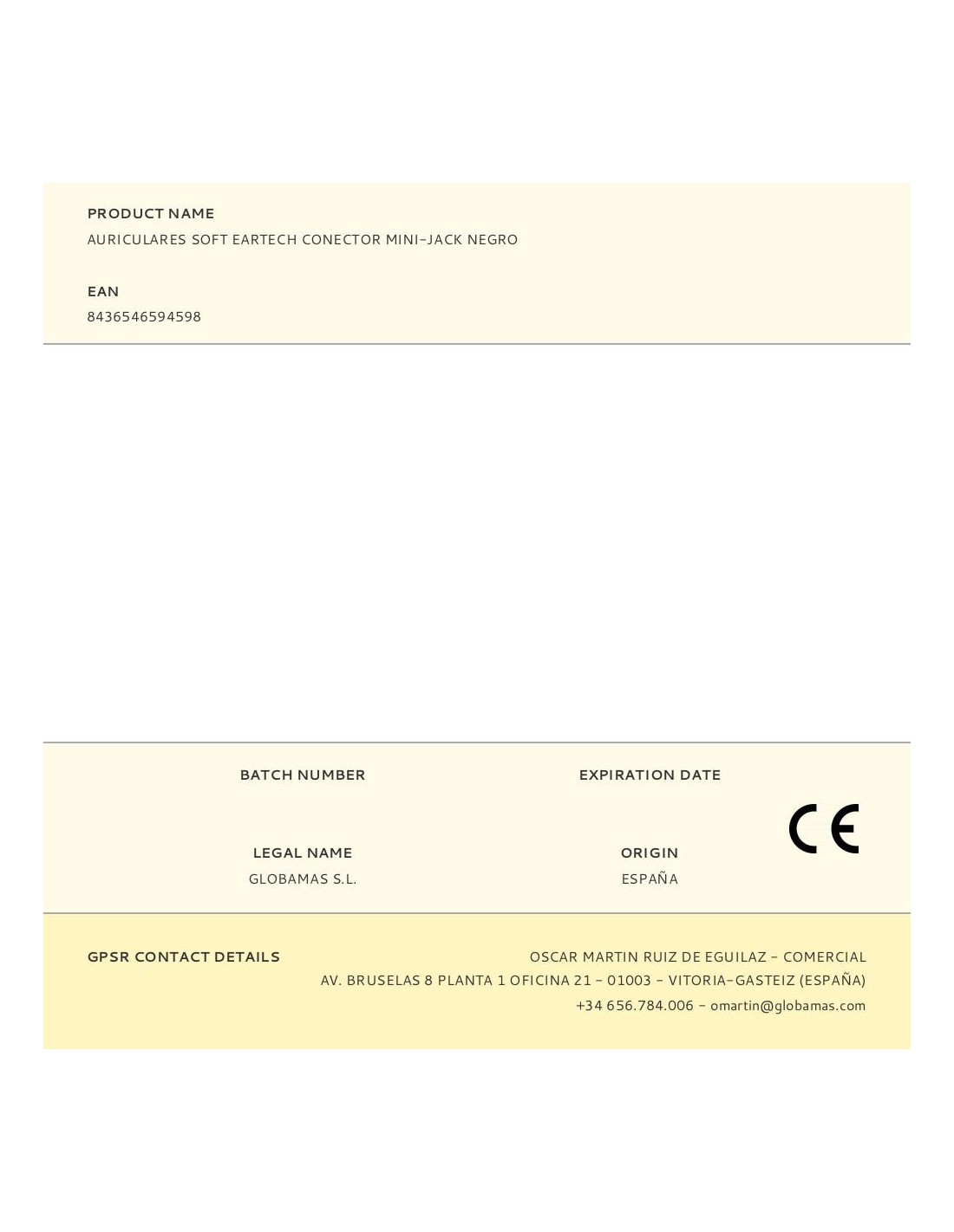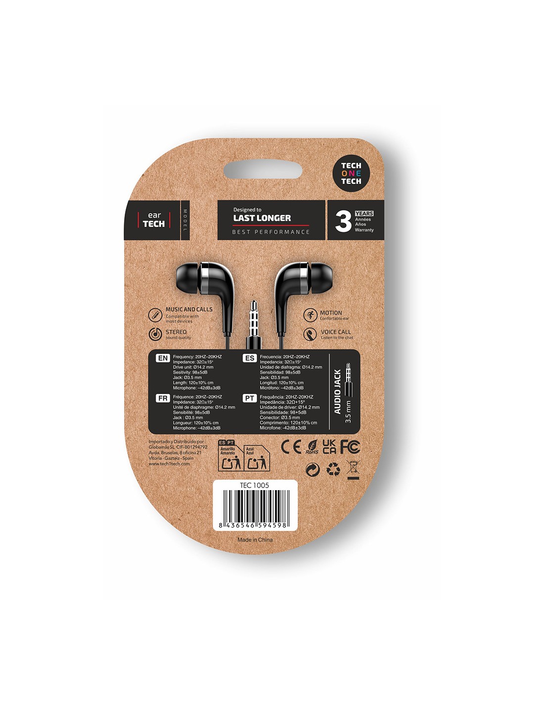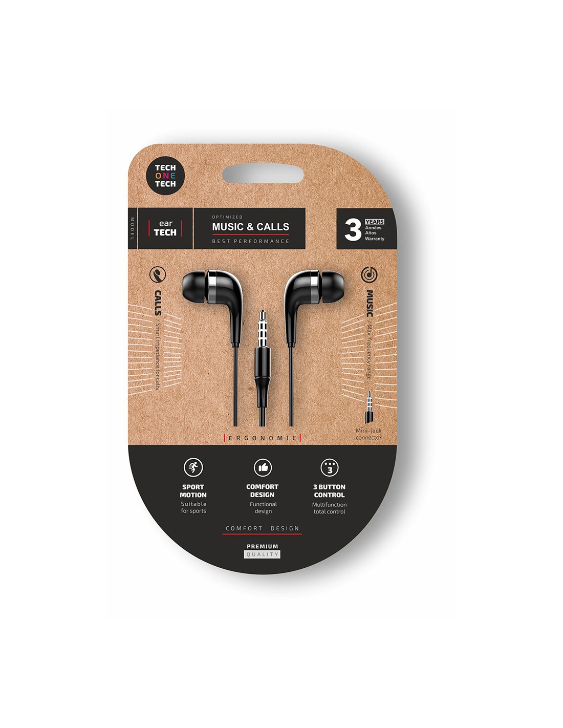 Auriculares soft eartech intraurales, ergonómicos, mini-jack ø3,5 mm, estéreo, con micrófono -42 db ±3 db, controles de volumen y tercer botón multifunción amplio rango de frecuencias 20 hz - 20 khz impedancia 32 ohmios ±15% compatibles con apple, android y windows cable de 1,2 m negros