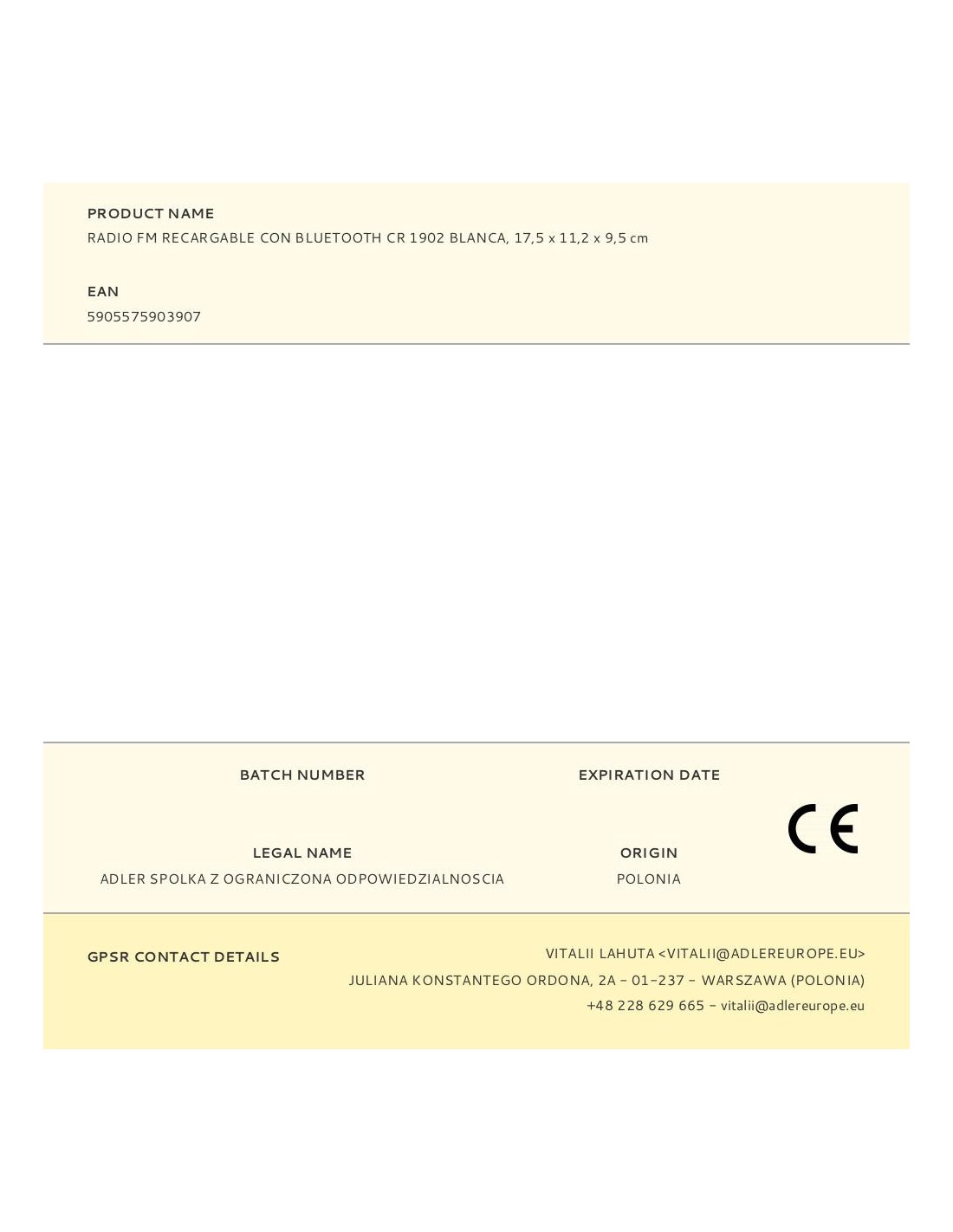 Radio fm recargable con bluetooth cr 1902 blanca, 16 x 7 x 10,5 cm