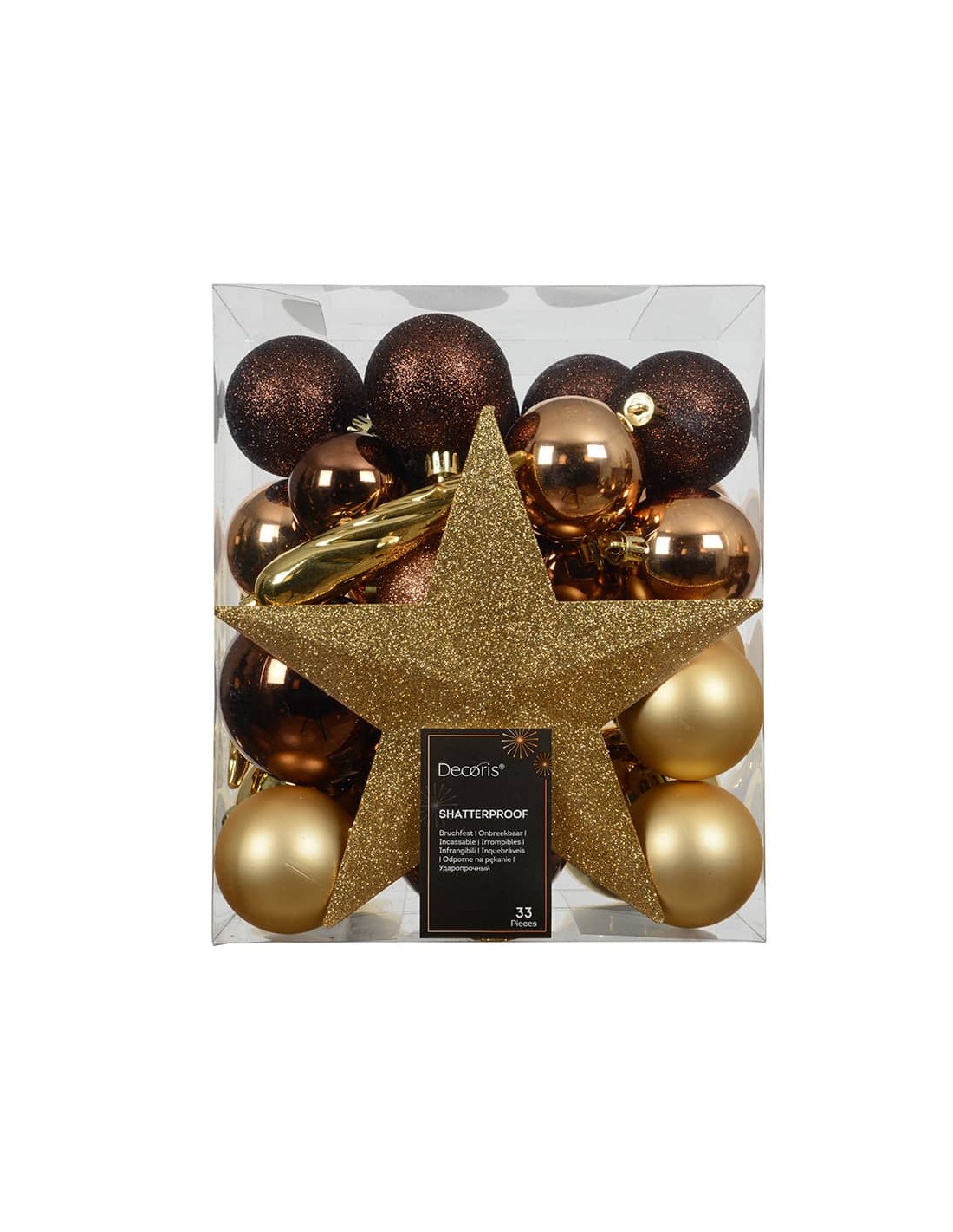 Accesorios para árbol de navidad tonos marrones y dorados, 33 piezas