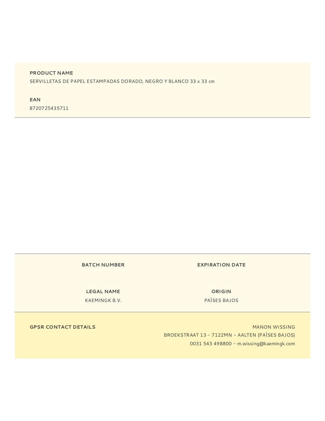 Servilletas de papel estampadas dorado, negro y blanco 33 x 33 cm